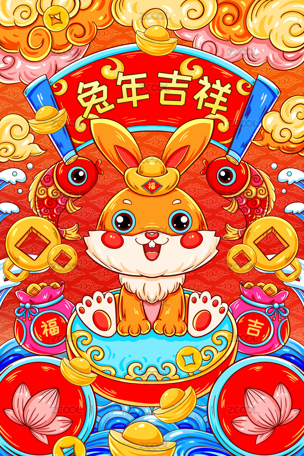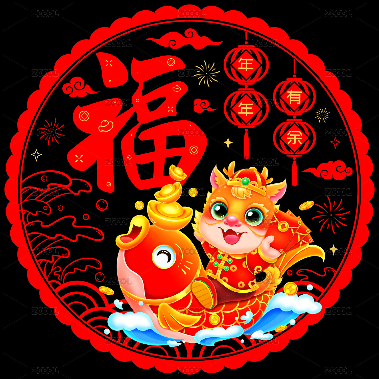 国潮春节新年蛇年生肖锦鲤蛇钓鱼窗花