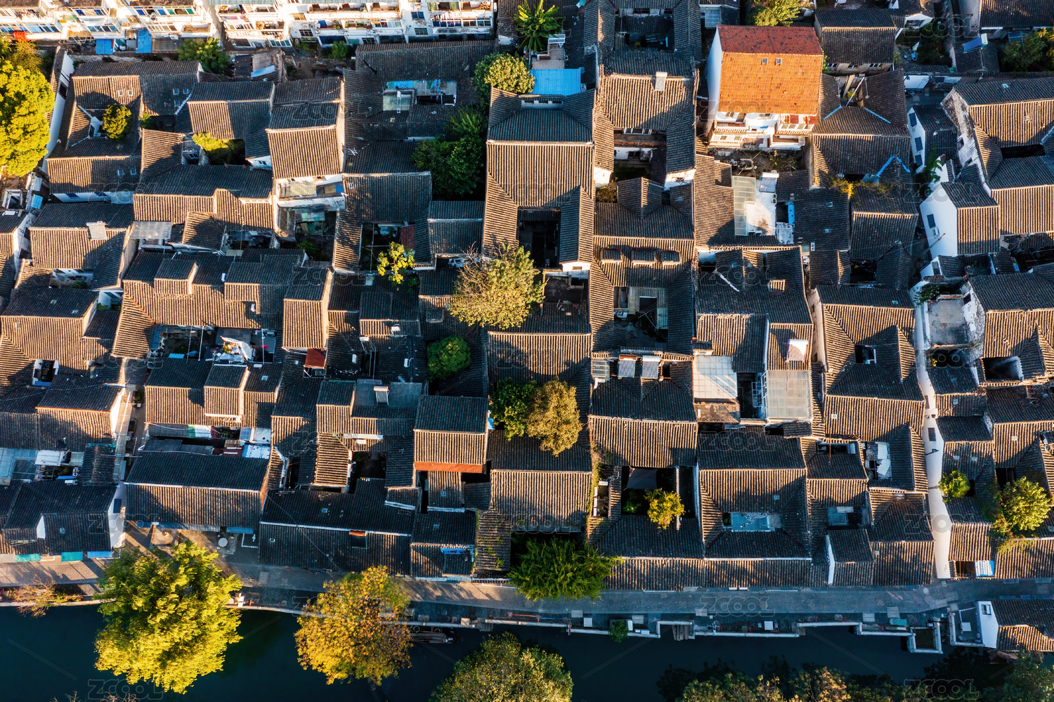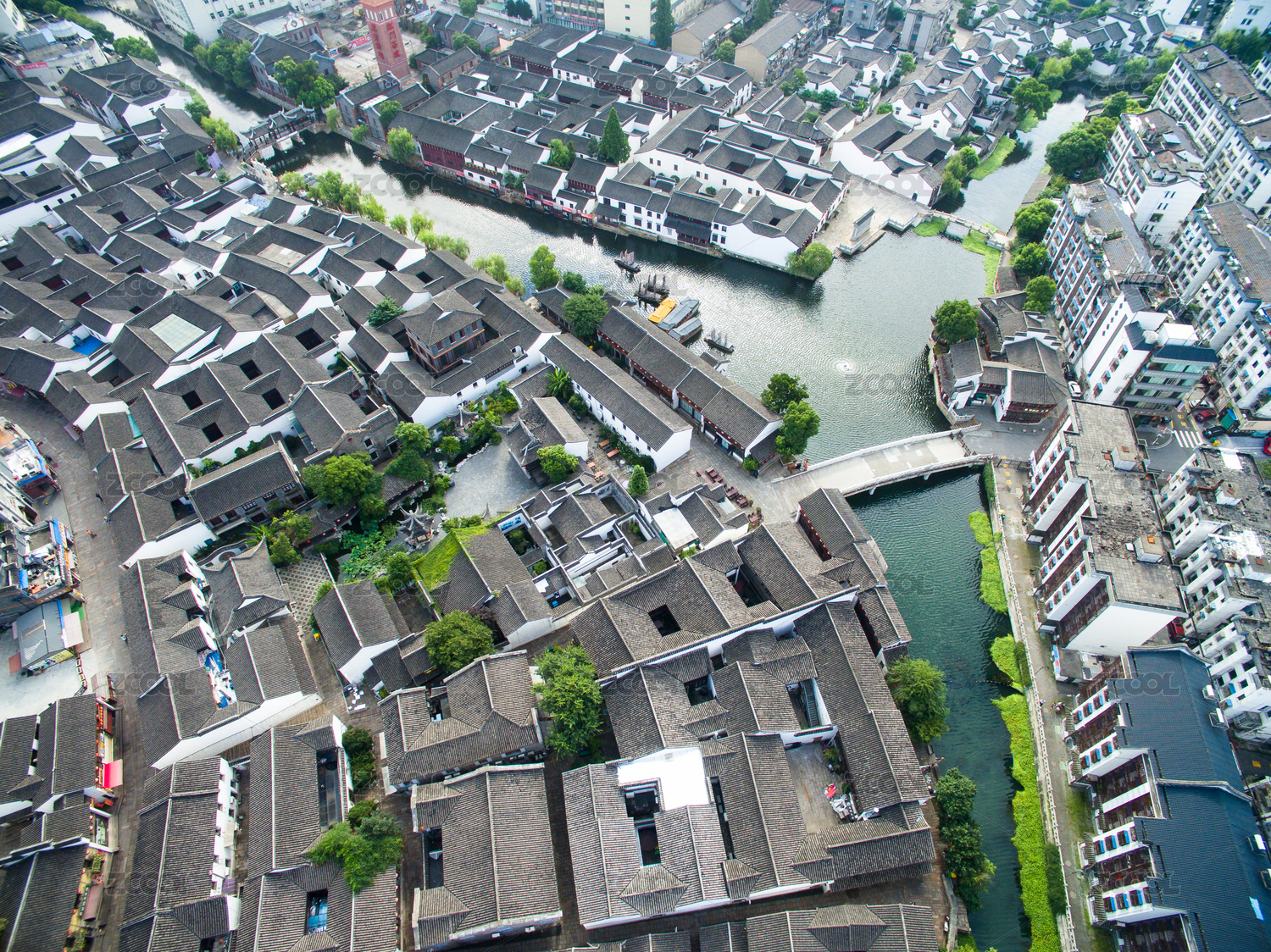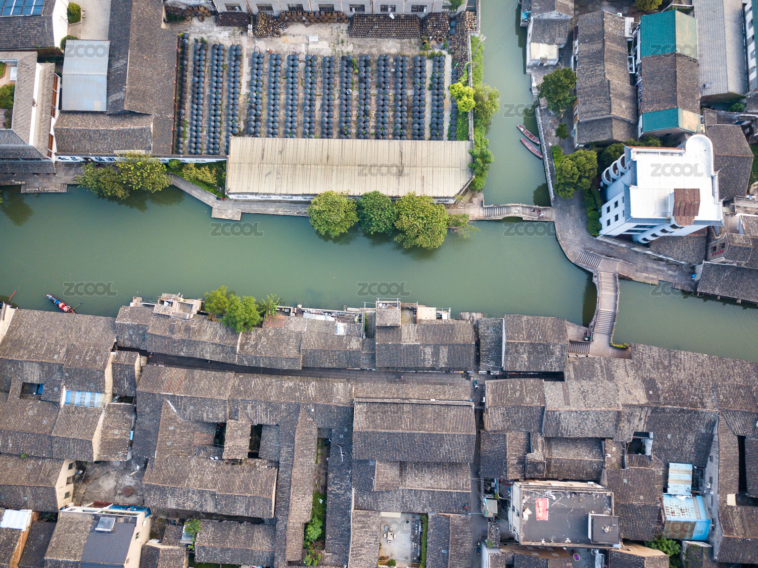 航拍,浙江,湖州,老街,衣裳街,河流,民居,瓦屋,中式,传统
