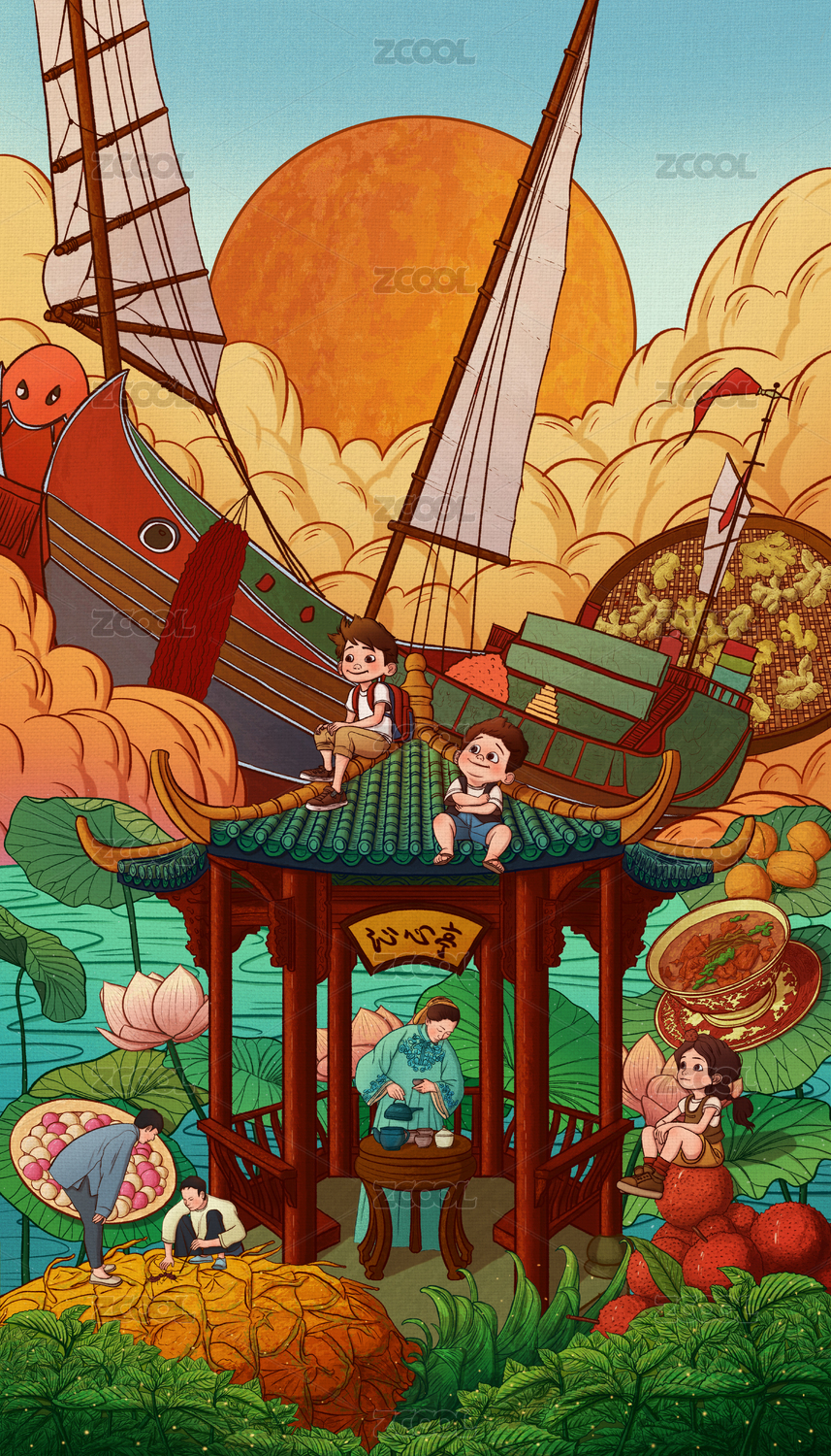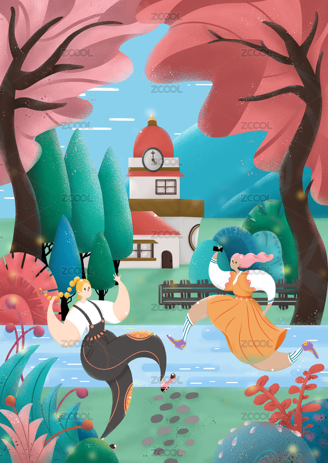 儿童节六一小朋友小孩子礼物插画玩耍梦想