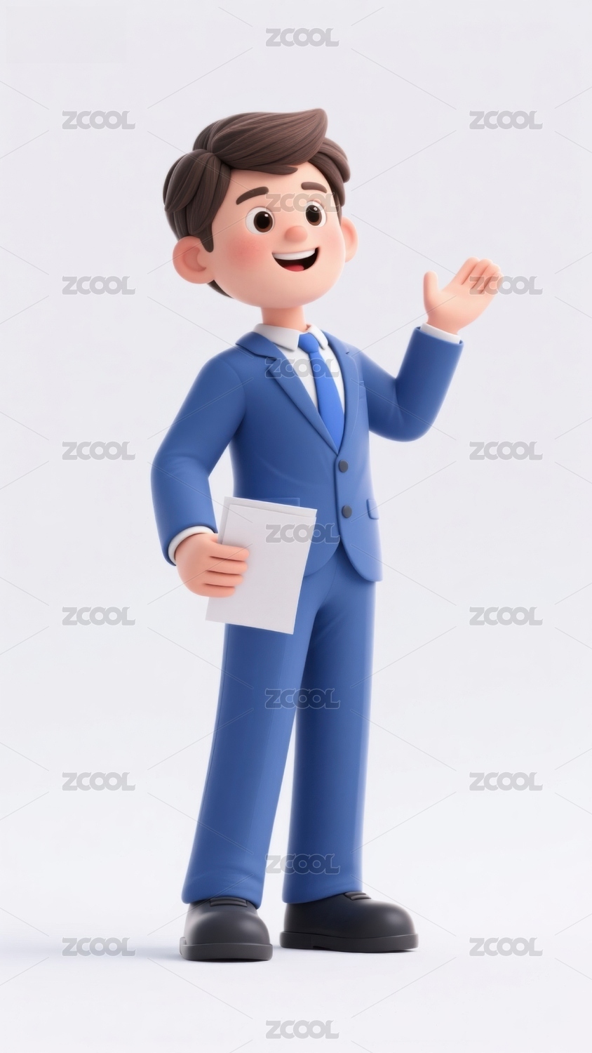 卡通人物穿西装挥手