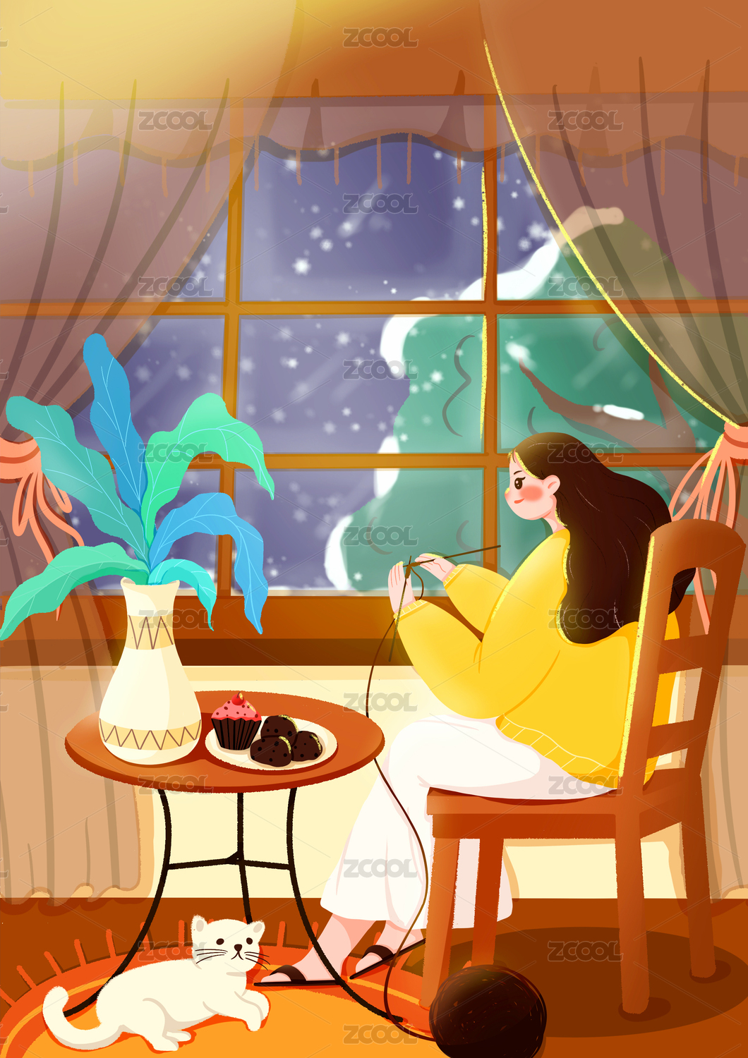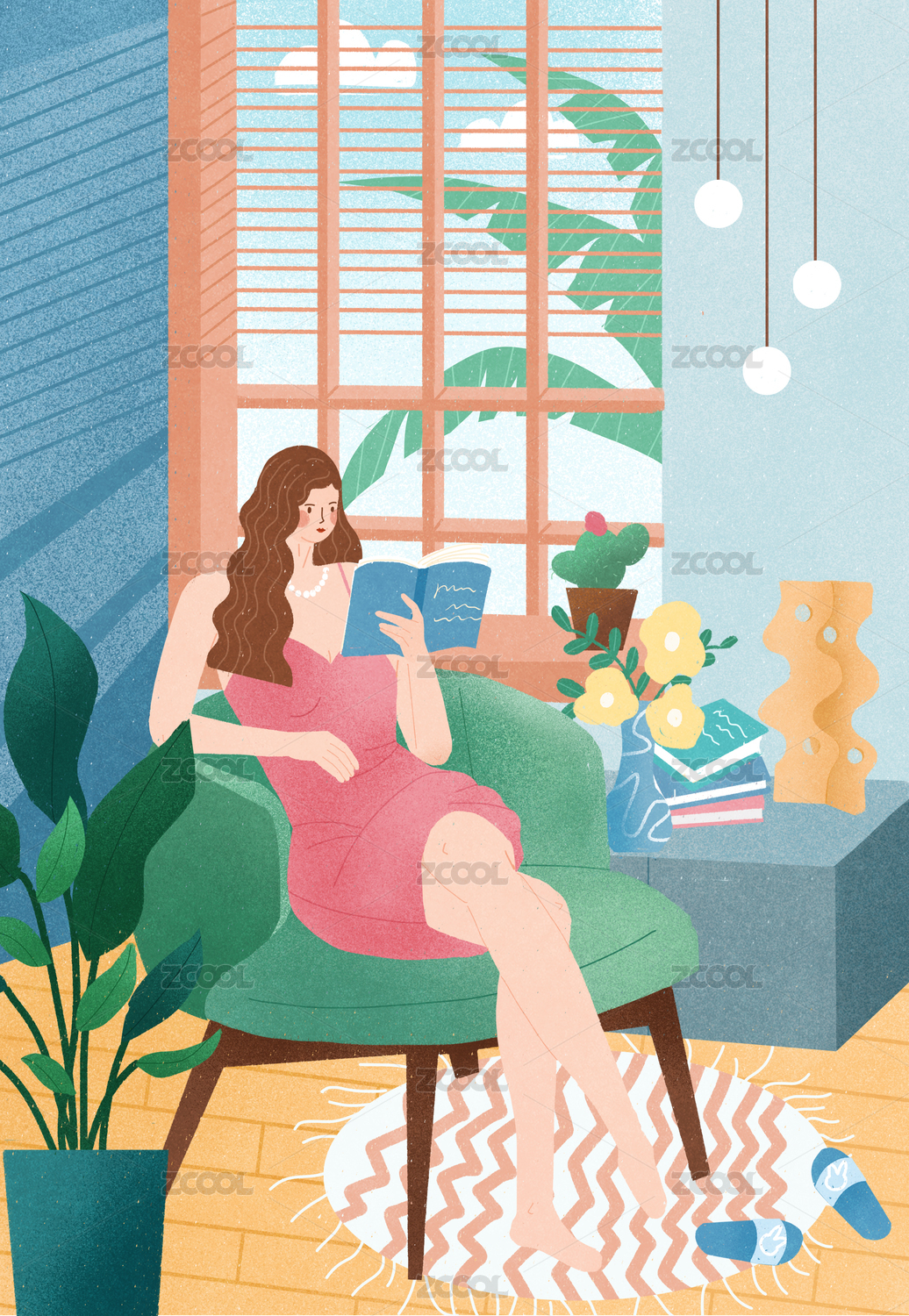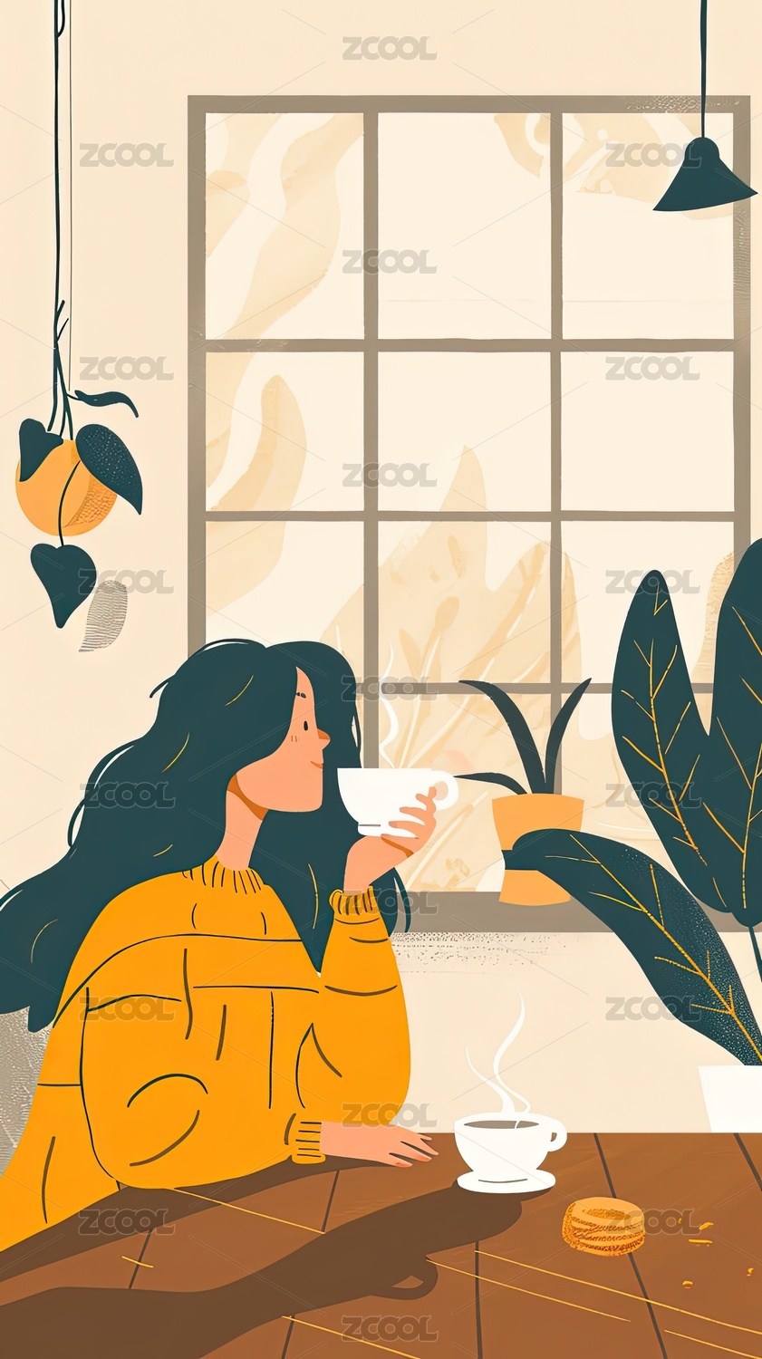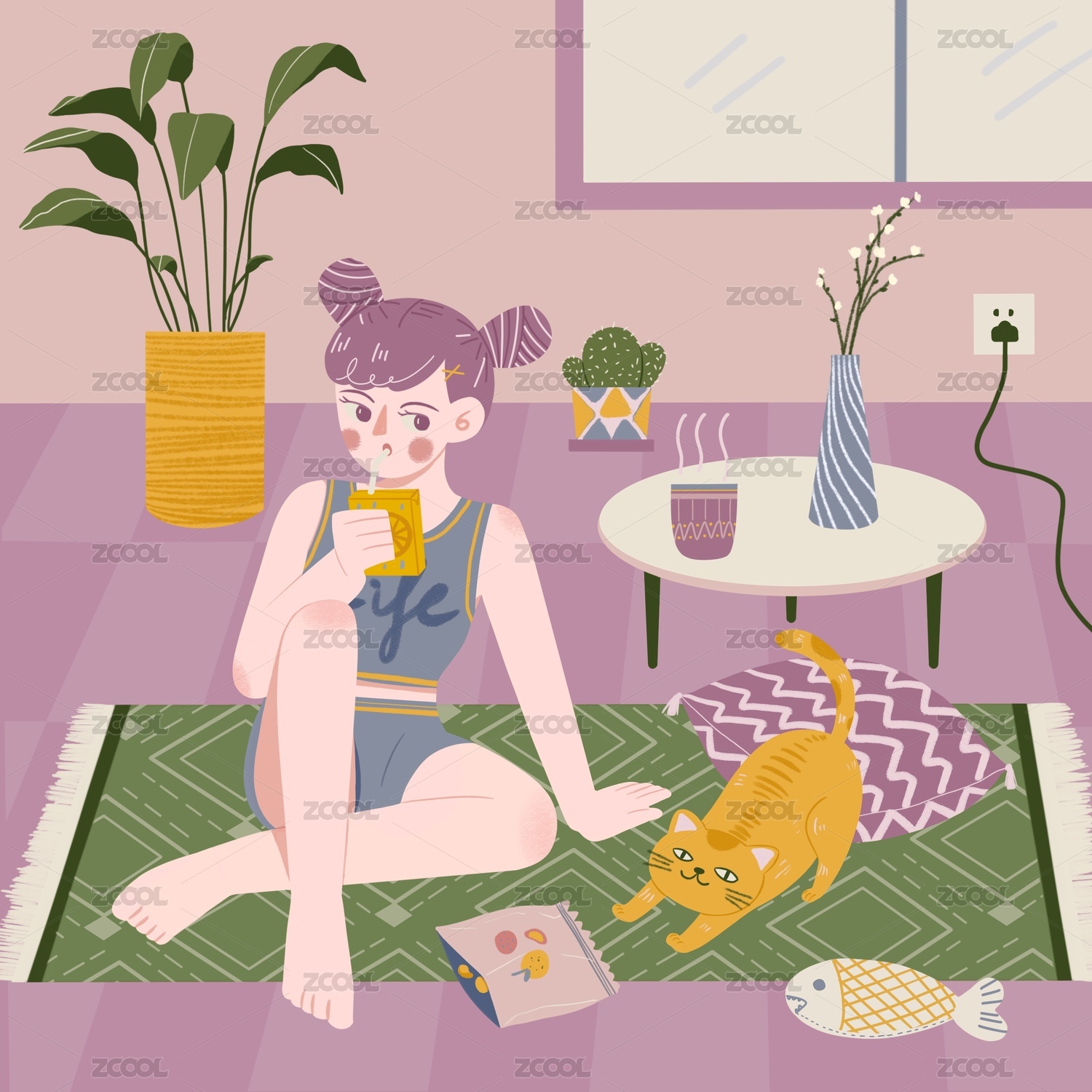 艺术,插画,奶茶,插图,喝奶茶,餐饮,饮品,宅女,扁平插画,扁平风格