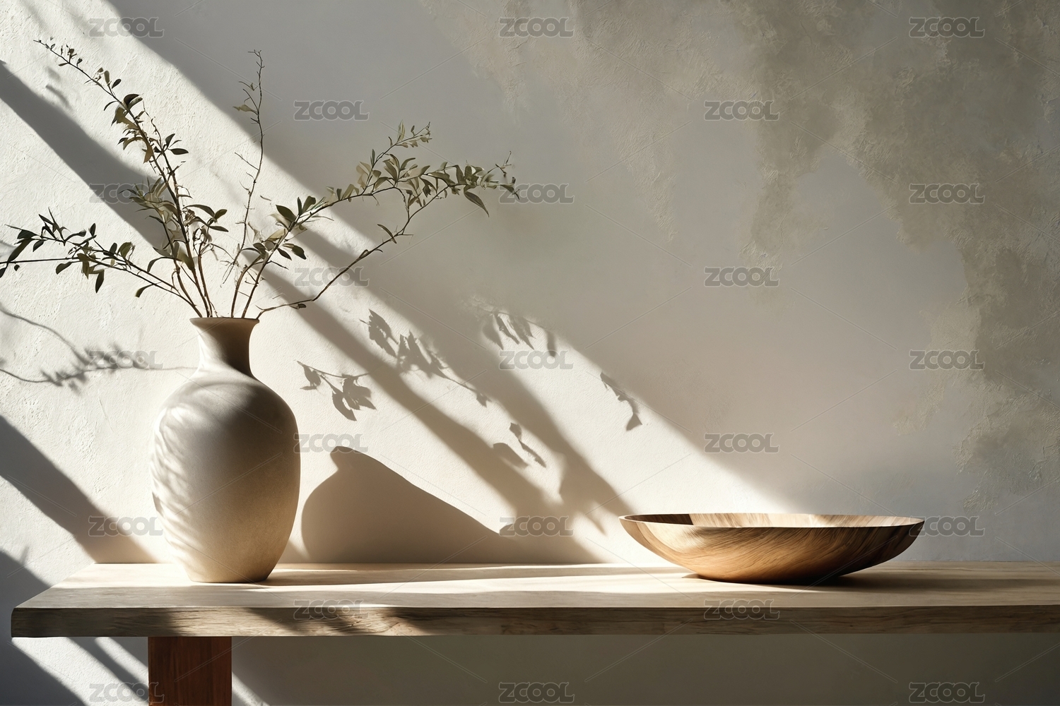 淡绿背景下的禅意器物展示