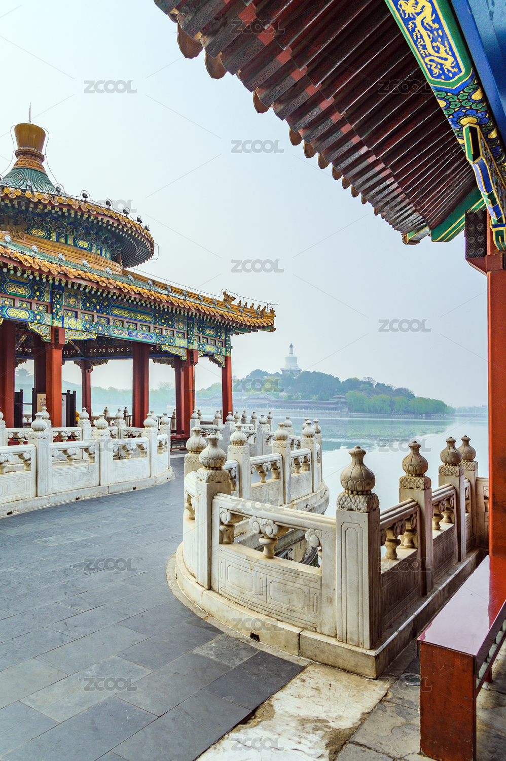 中国北京北海公园琼岛的古代园林建筑
