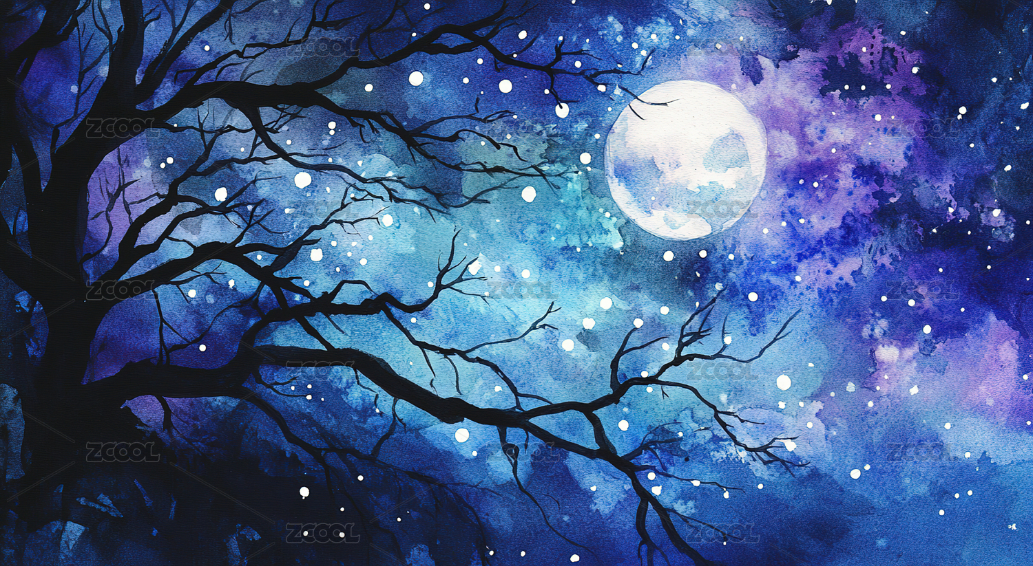夜晚星空与满月