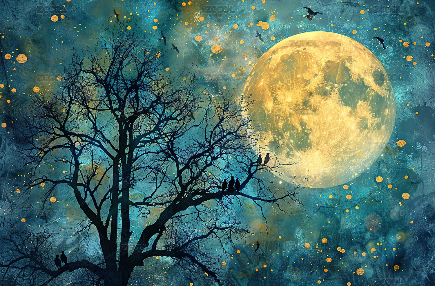 月夜树影神秘星空
