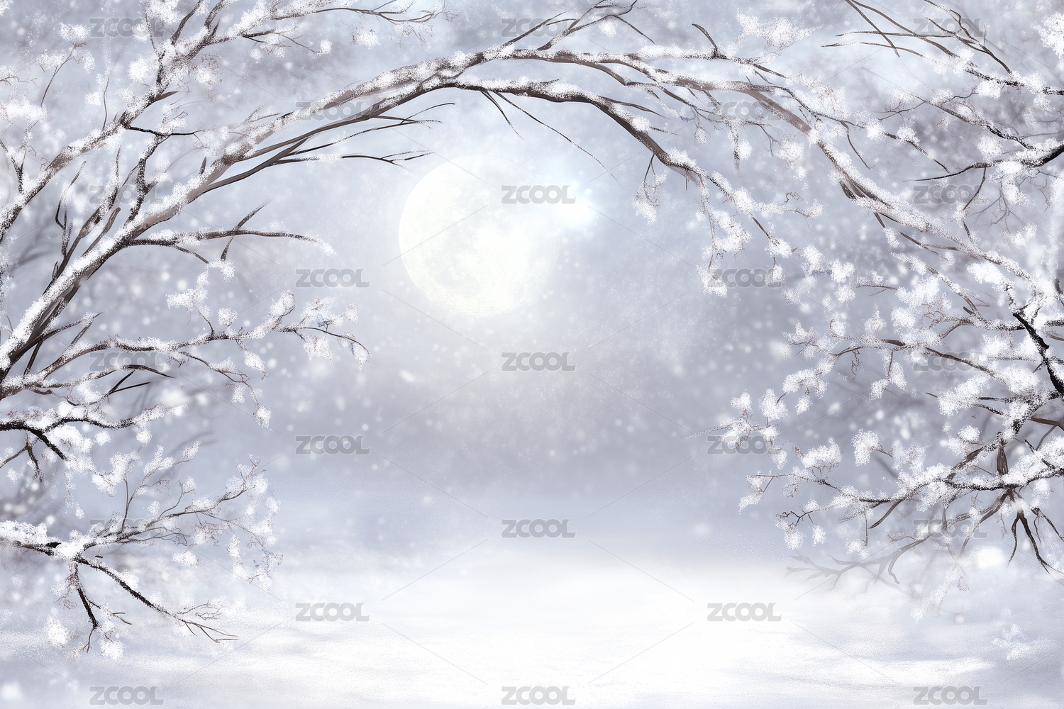 雪夜月光下的树枝