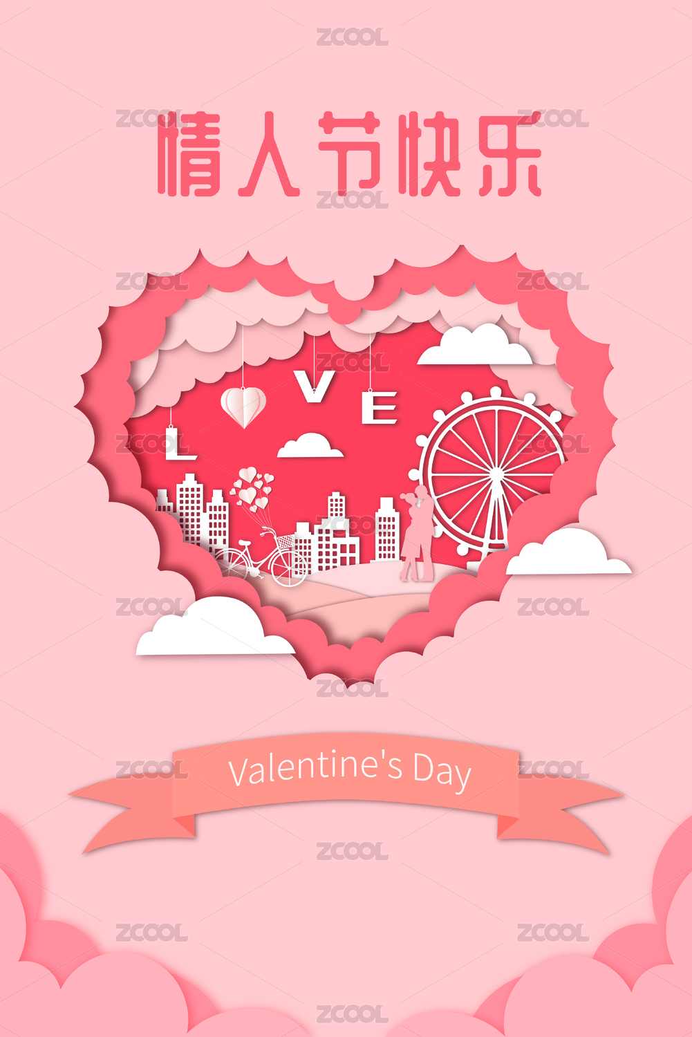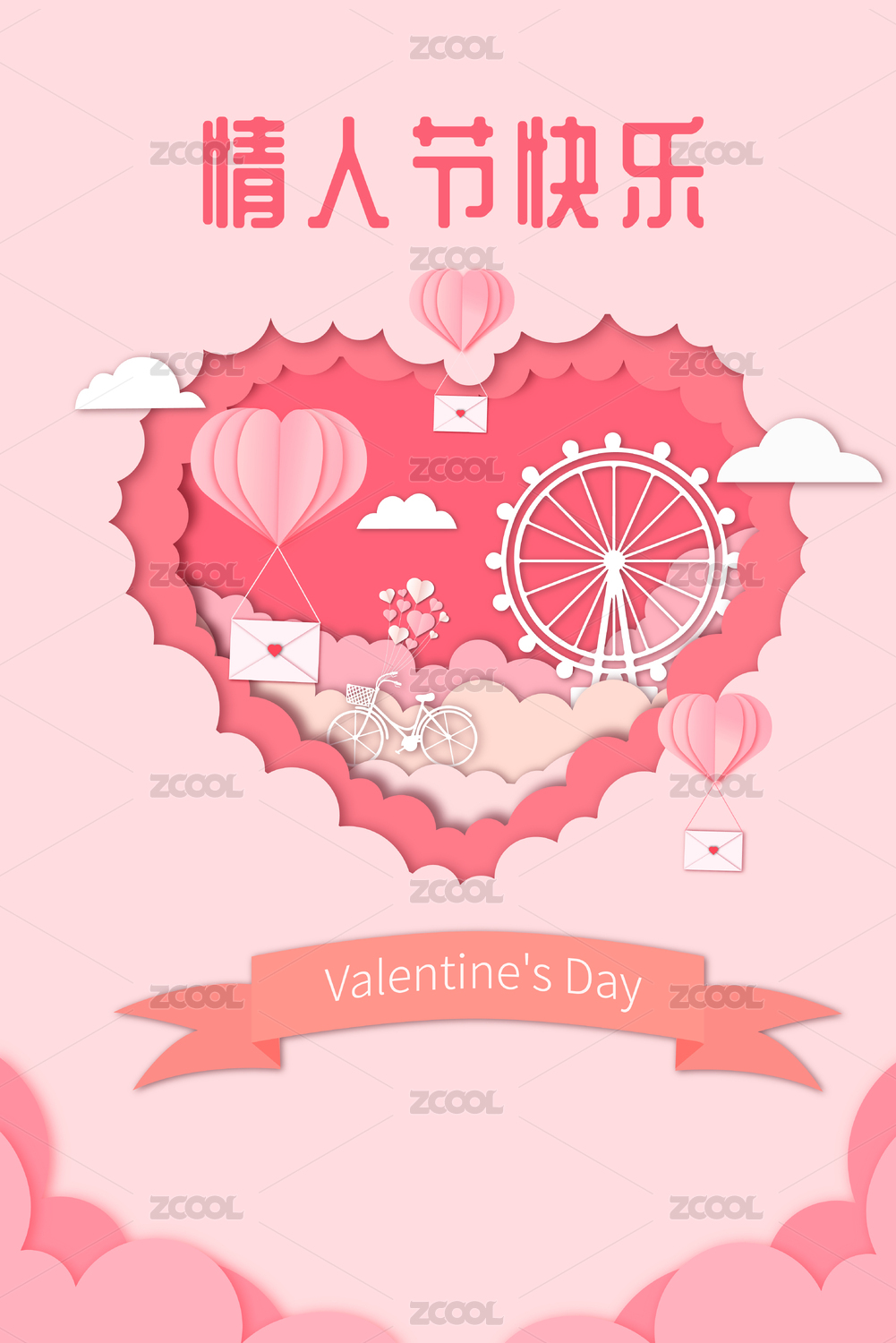 浪漫情人节剪纸风矢量插画