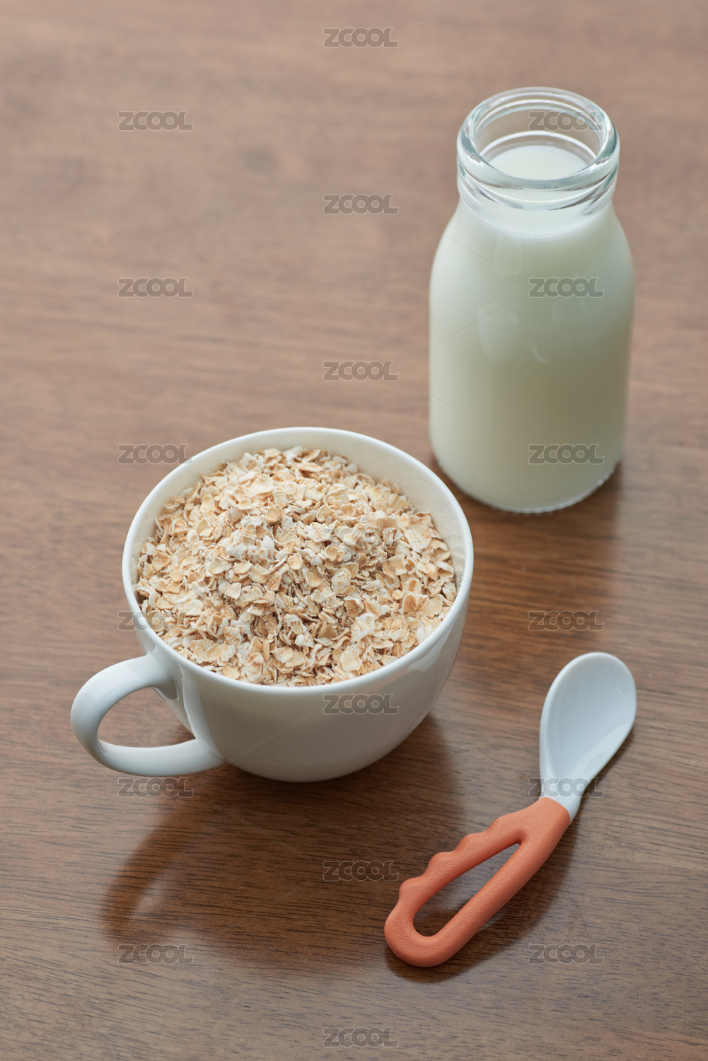 浓香牛奶燕麦片和酥脆的米饼早餐