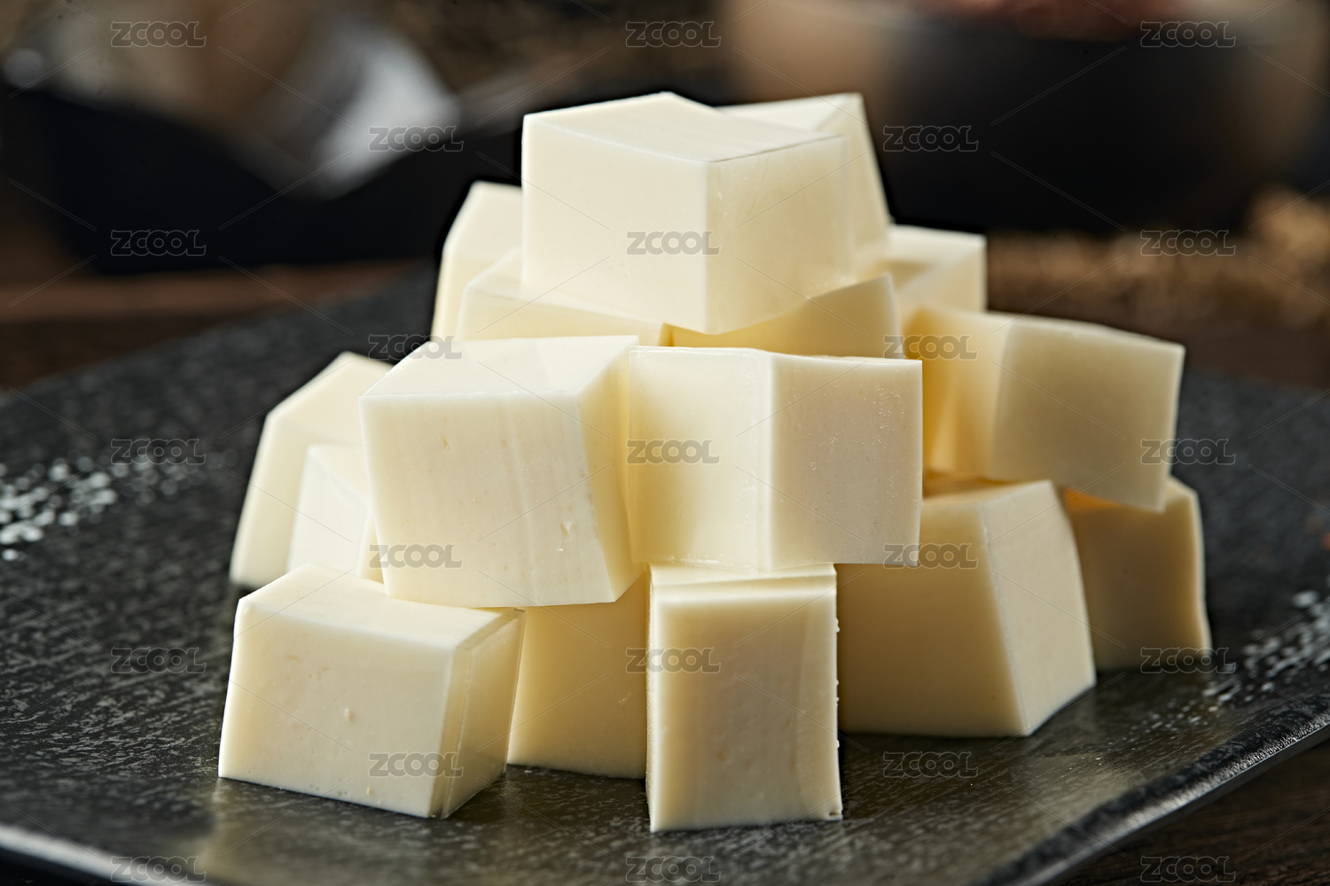 桌面上的盘子里的美味可口的豆腐