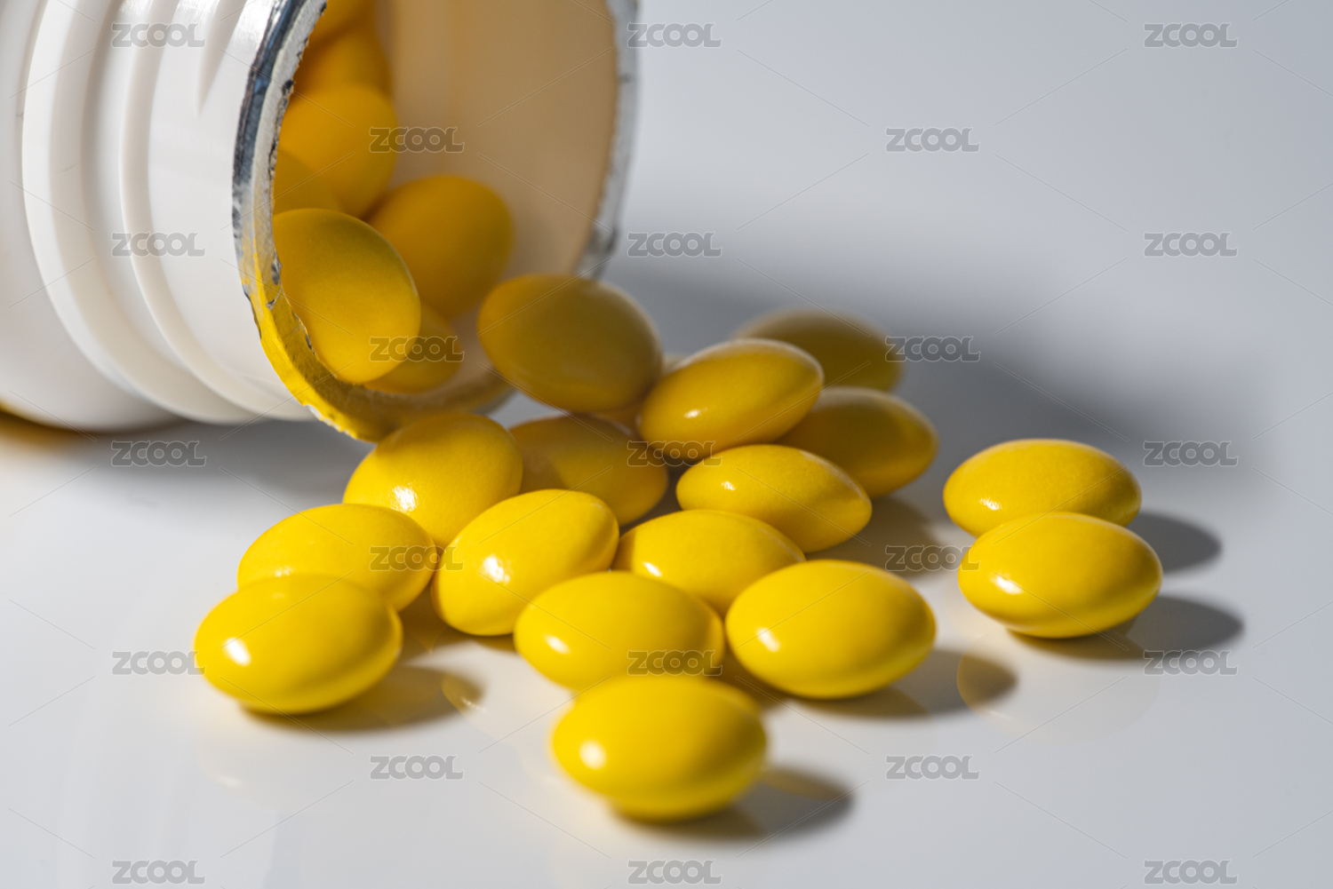 黄色药片和瓶子