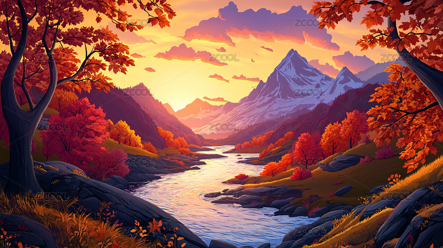 秋日山水画主题