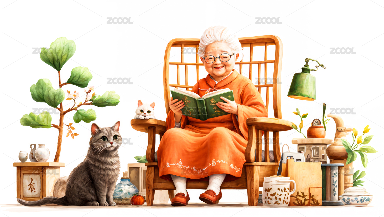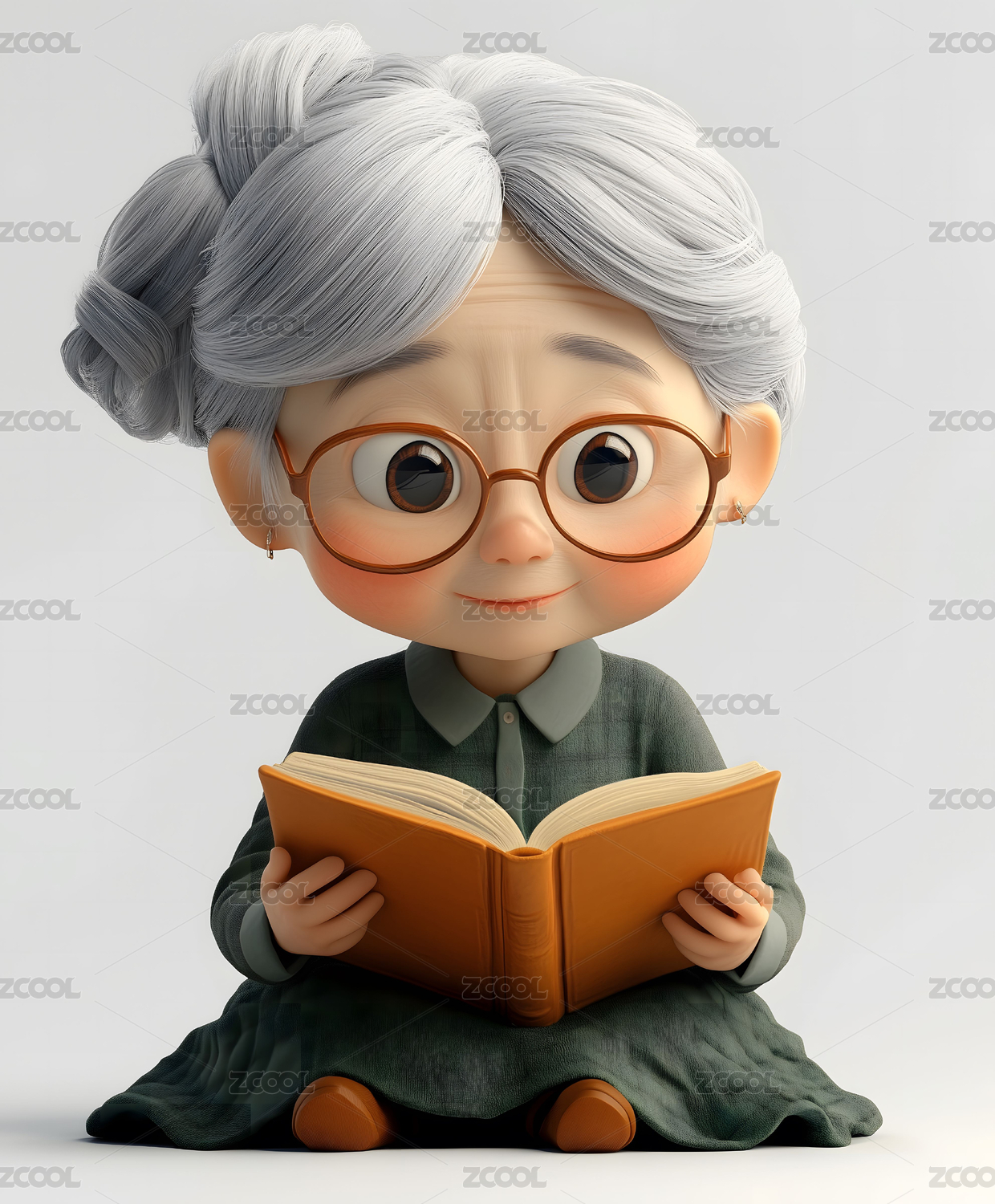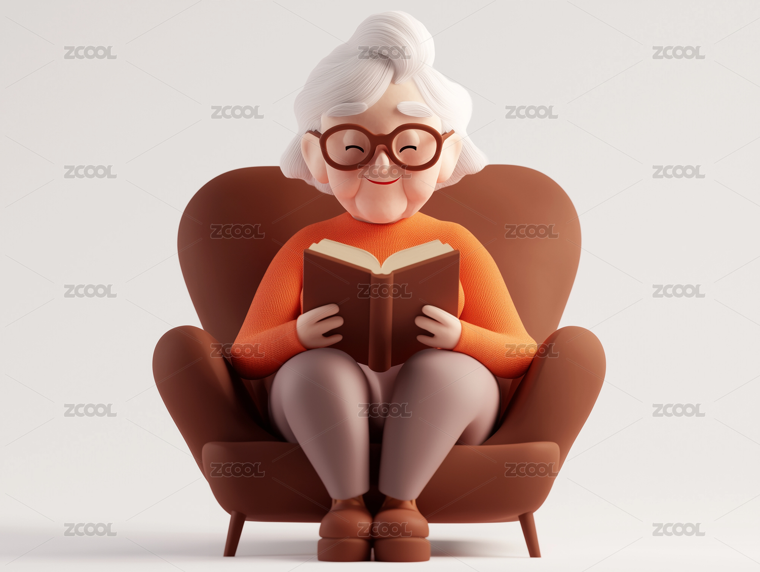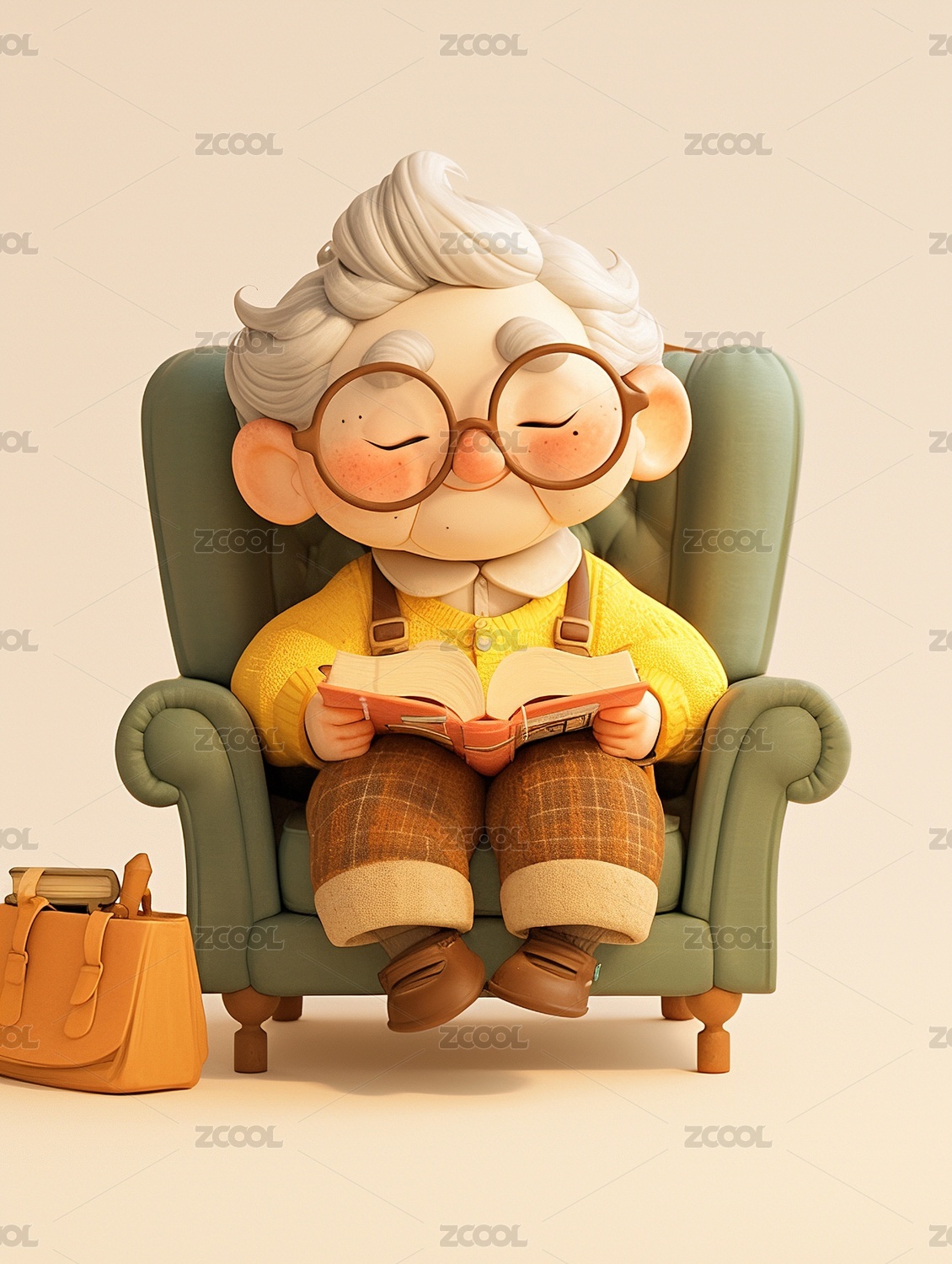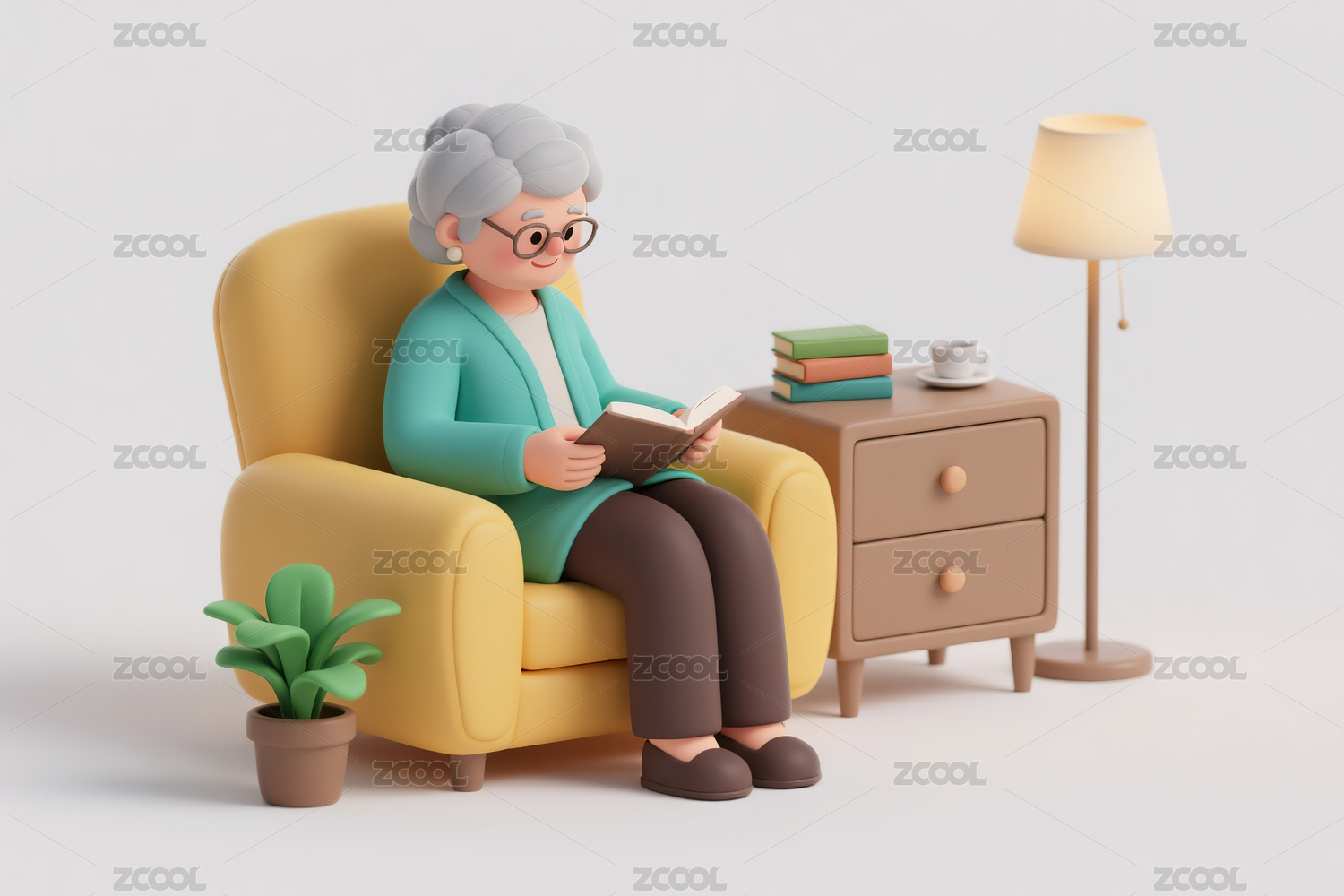 老年,生活,读书,看书,老奶奶,老人,3D,元素,素材,沙发