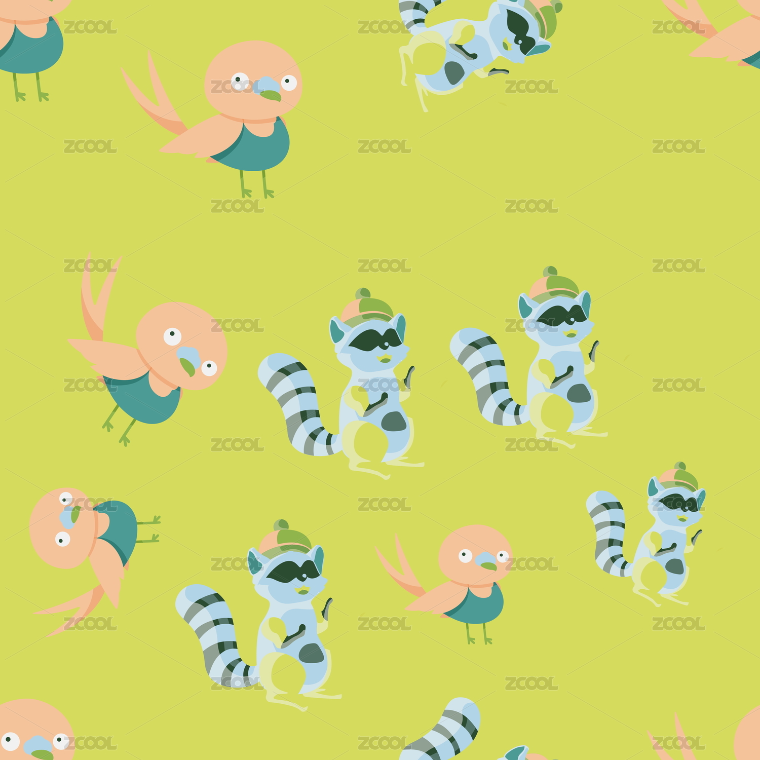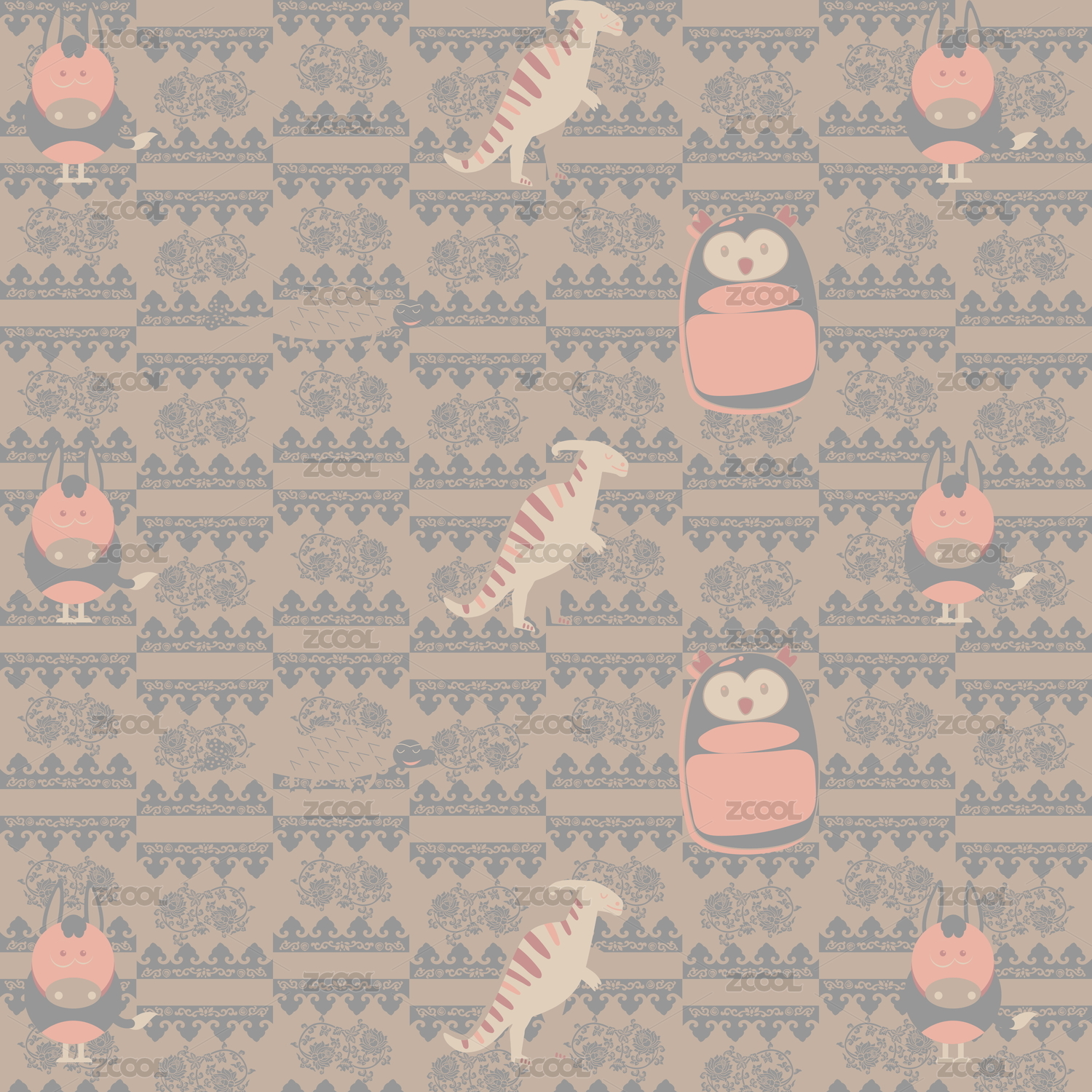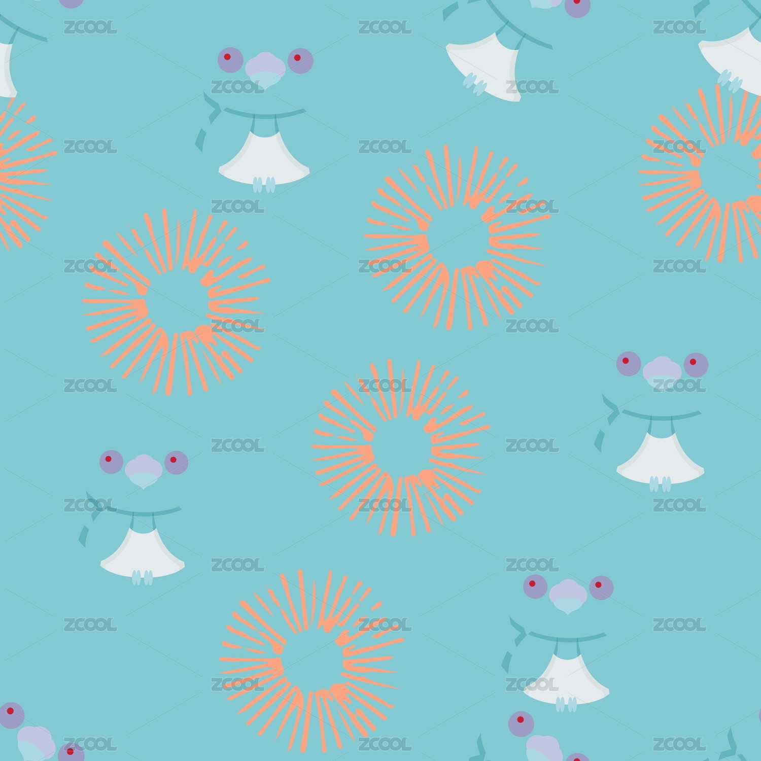 儿童可爱手绘宇宙飞船恐龙小怪物无缝印花