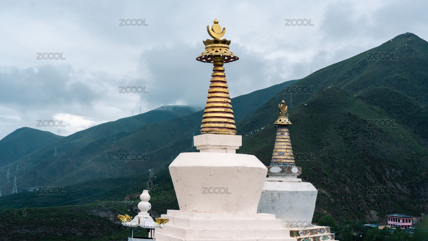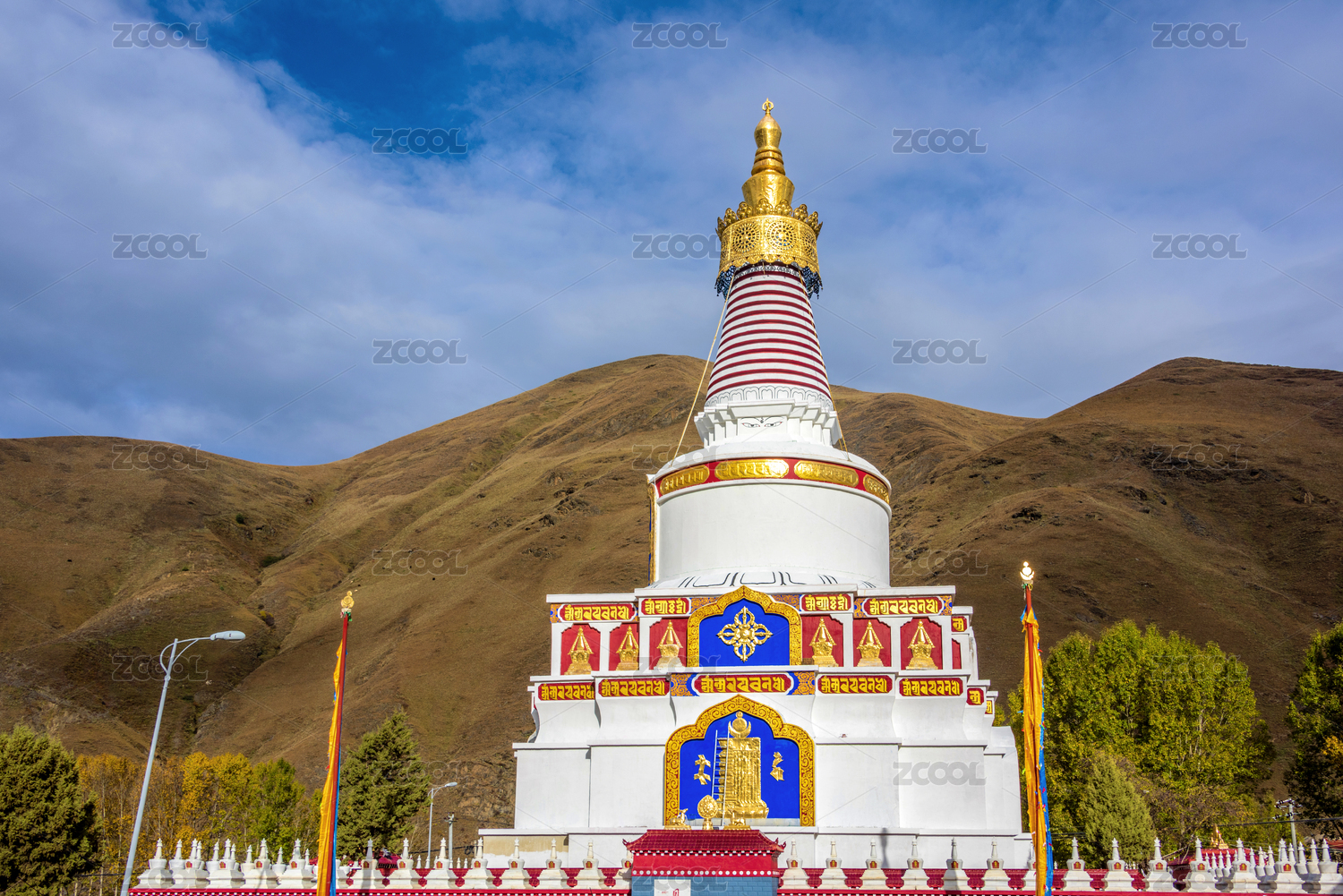 金塔,阿柔大寺,塔,中国,青海,祁连山,藏族,复古,寺庙,寺院