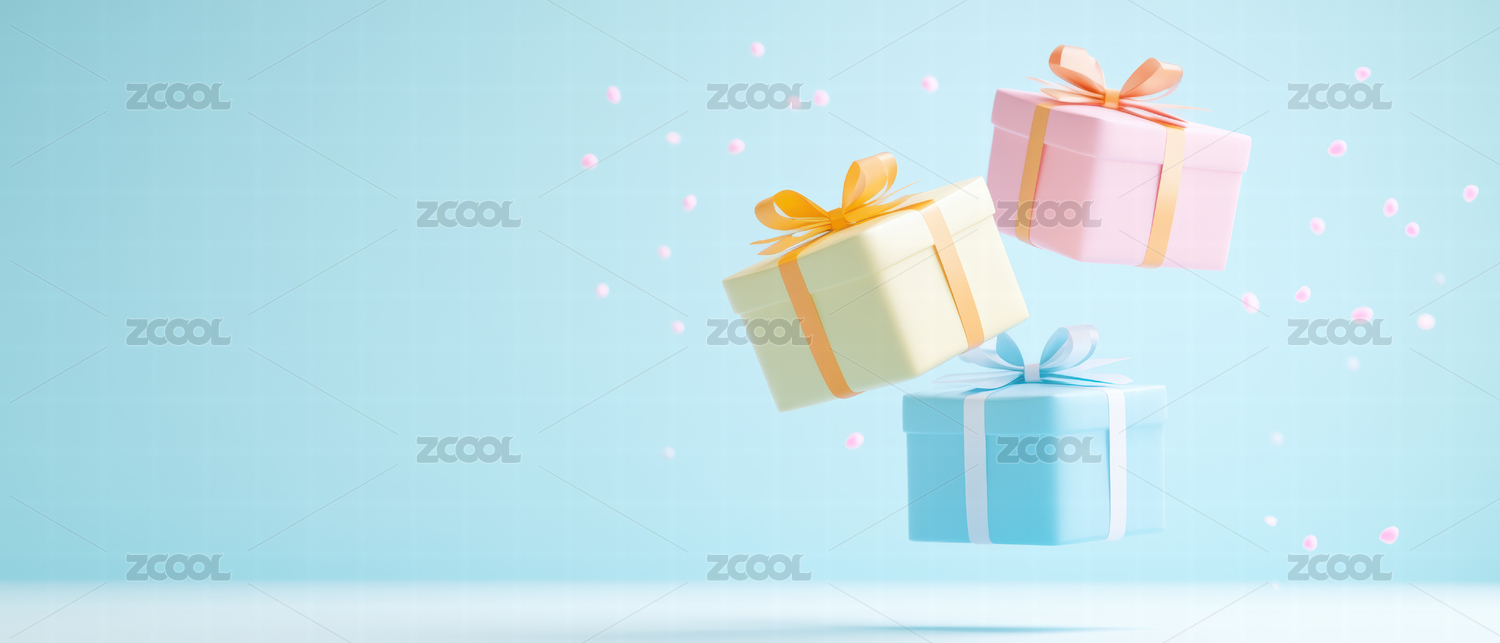悬浮的彩色礼品盒