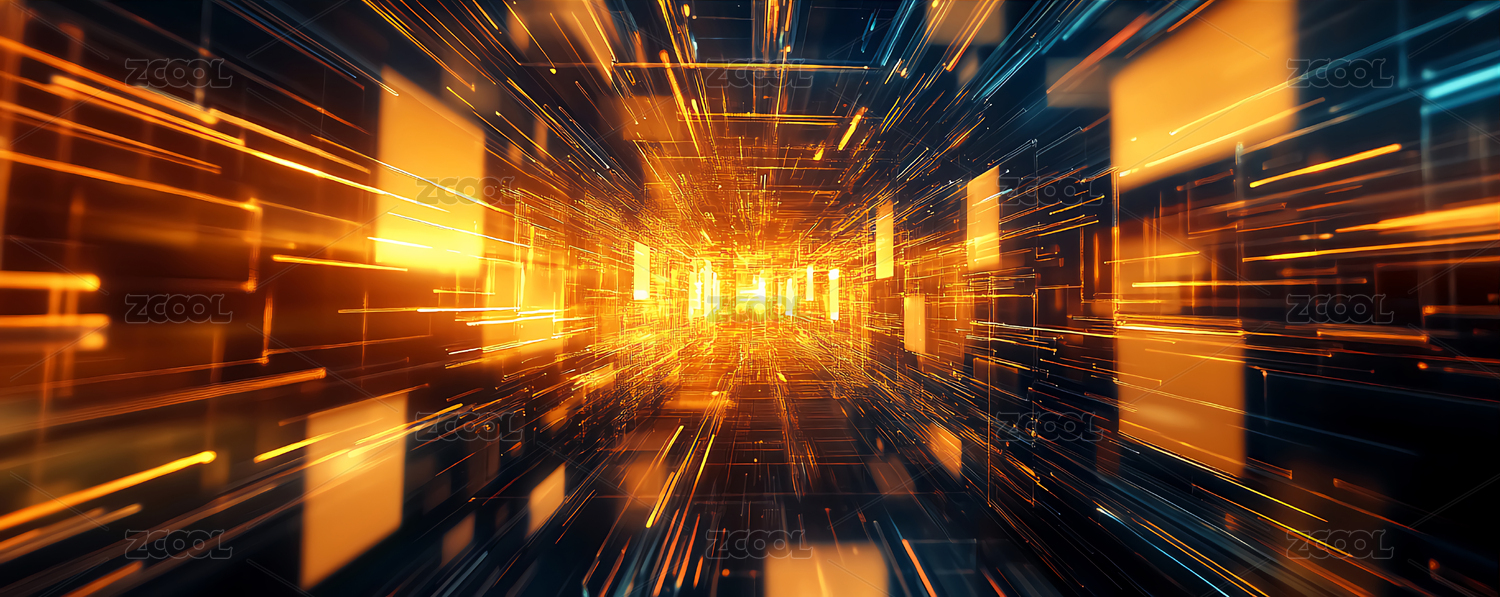 飞速的橙色科技隧道