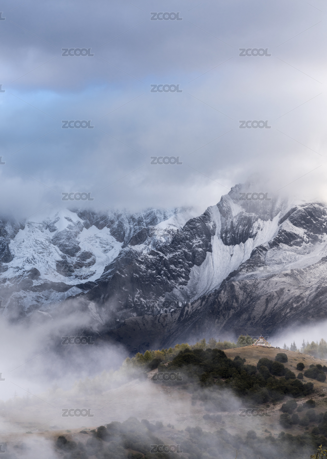 中国四川甘孜州川西提弄秘境贡嘎雪山风光