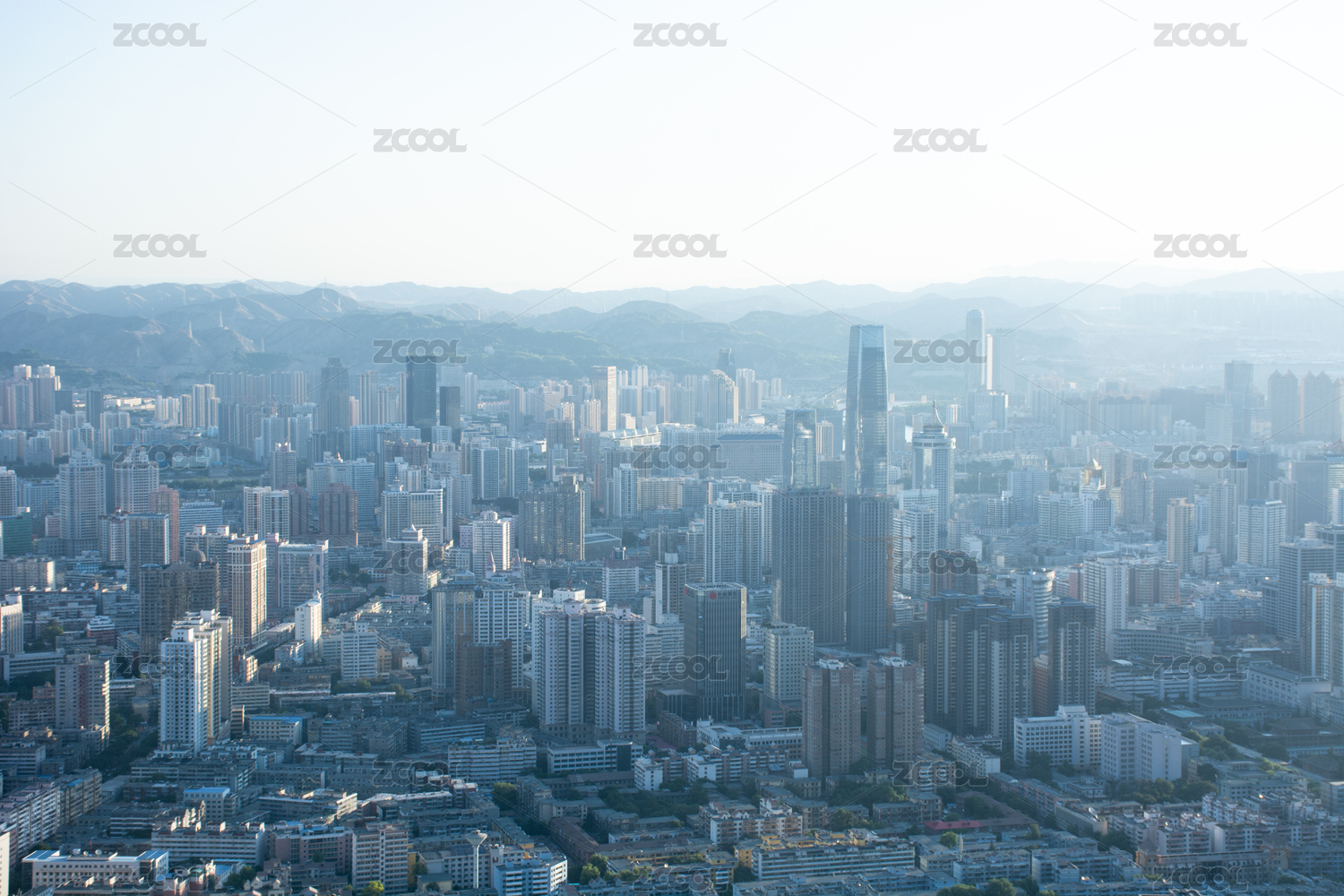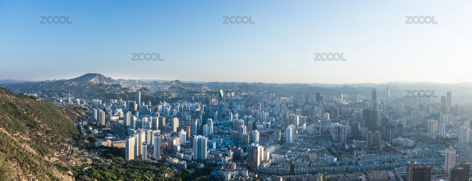 中国甘肃兰州早晨城市风光全景图