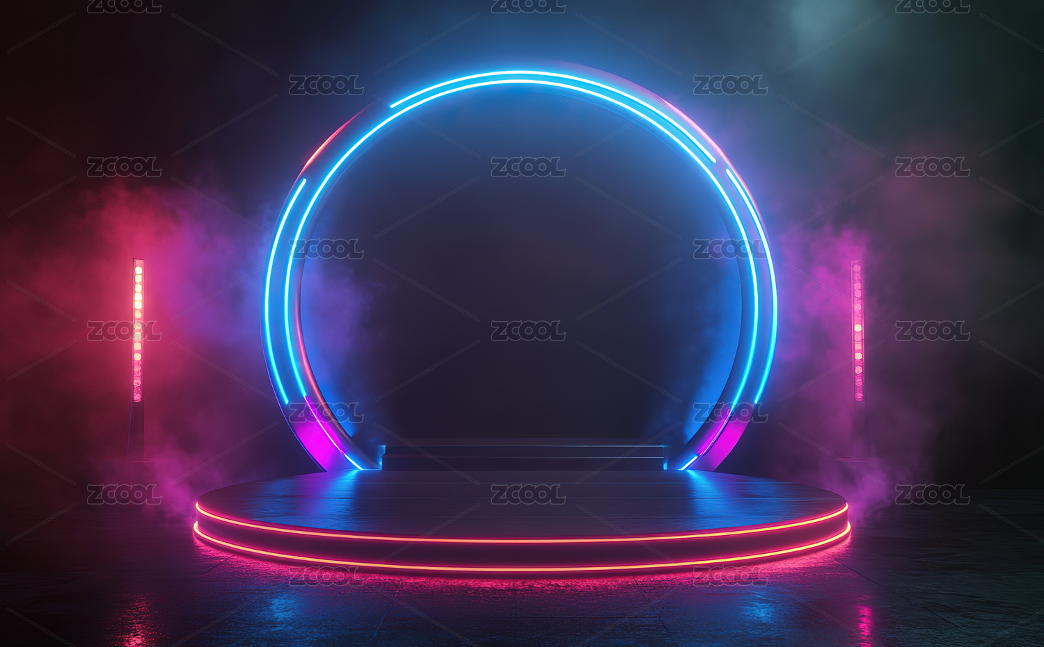 底座,舞台,圆形,光,展览,发光,霓虹灯