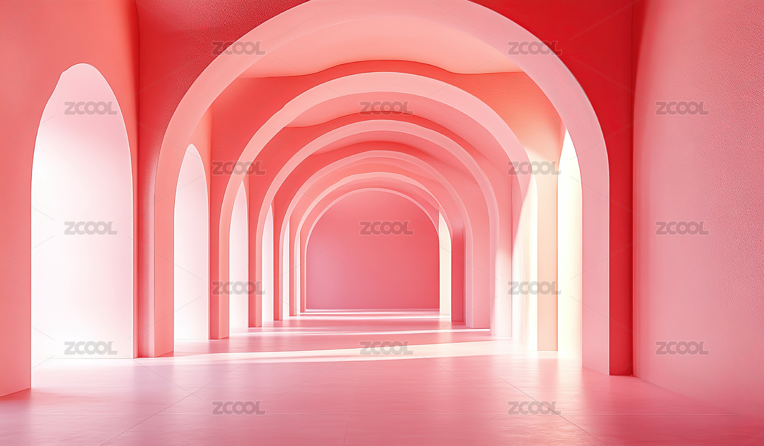 粉红色背景下的空走廊