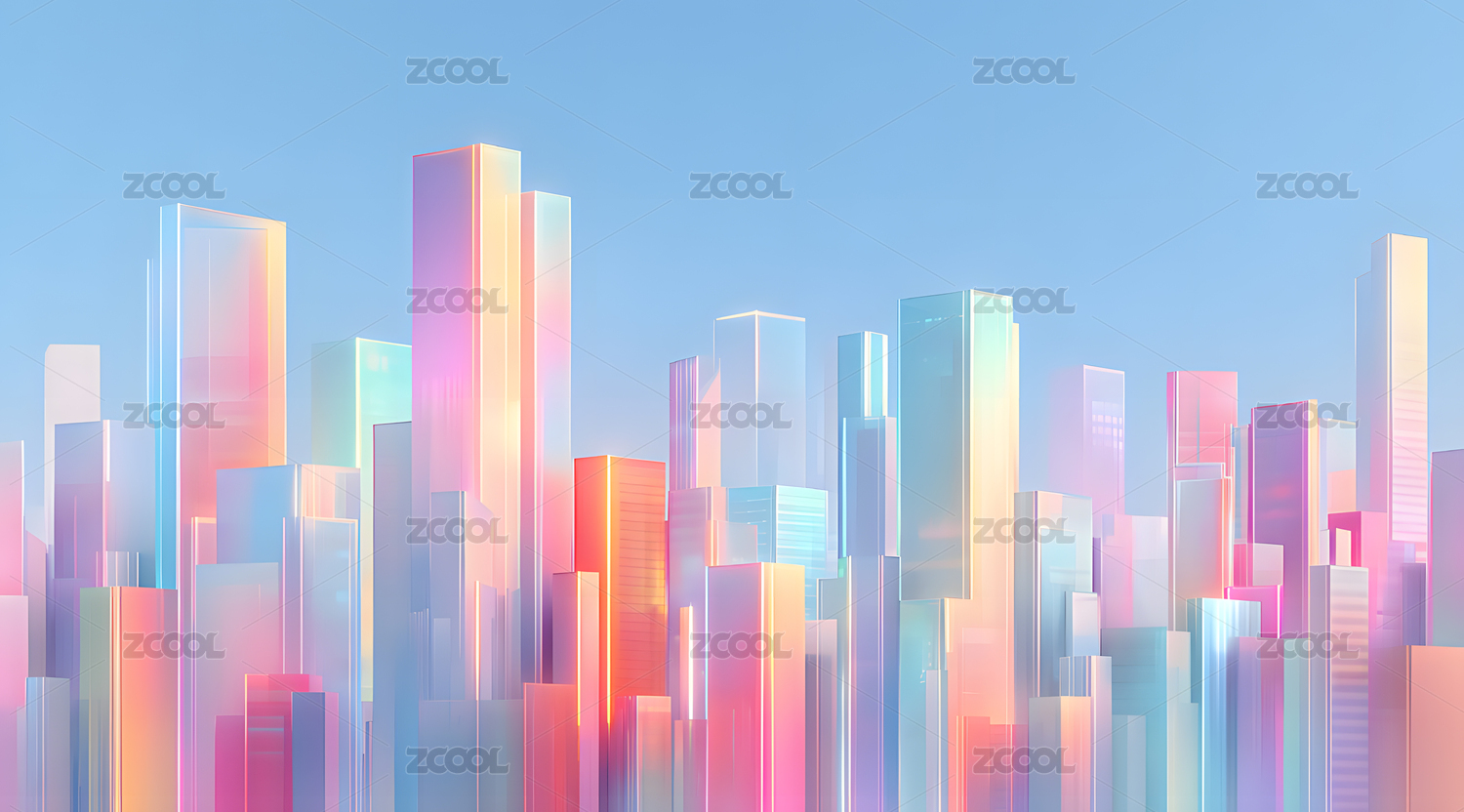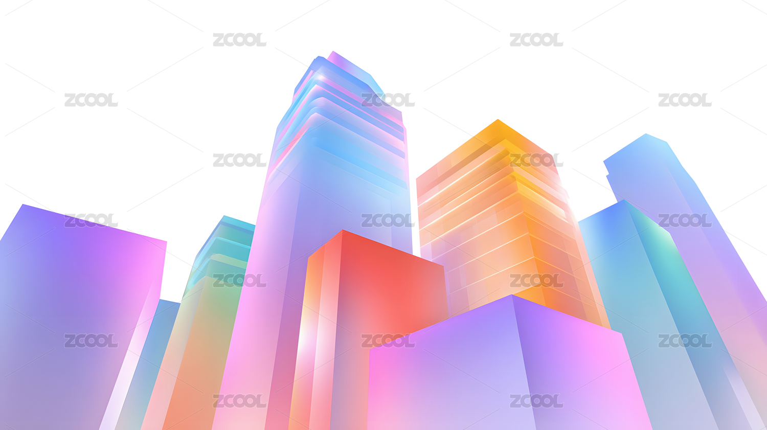 粉色绿色渐变长方体,透明玻璃,商业背景