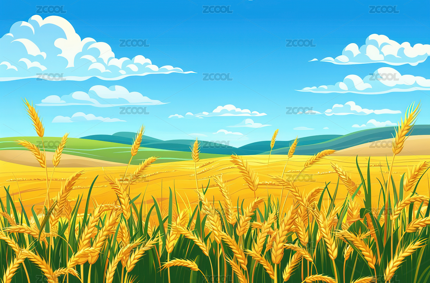 蓝天映衬下的麦田美景