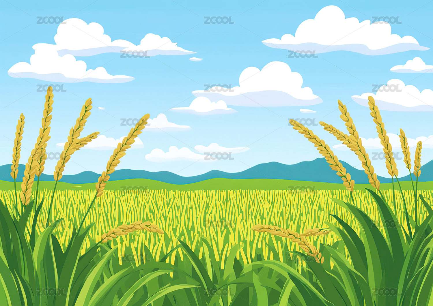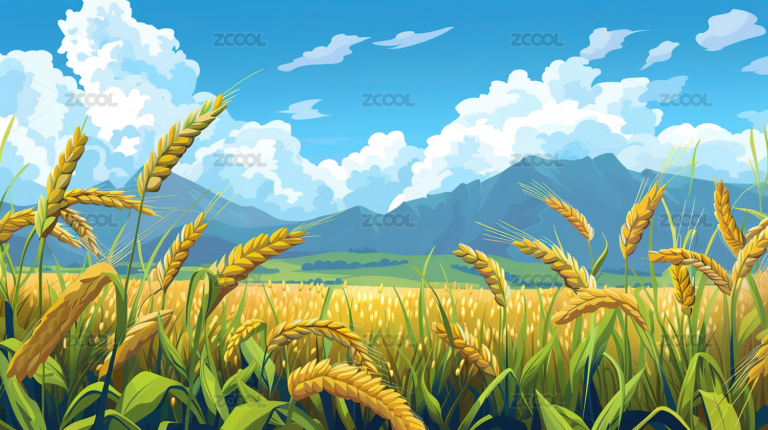 阳光明媚的麦田风景