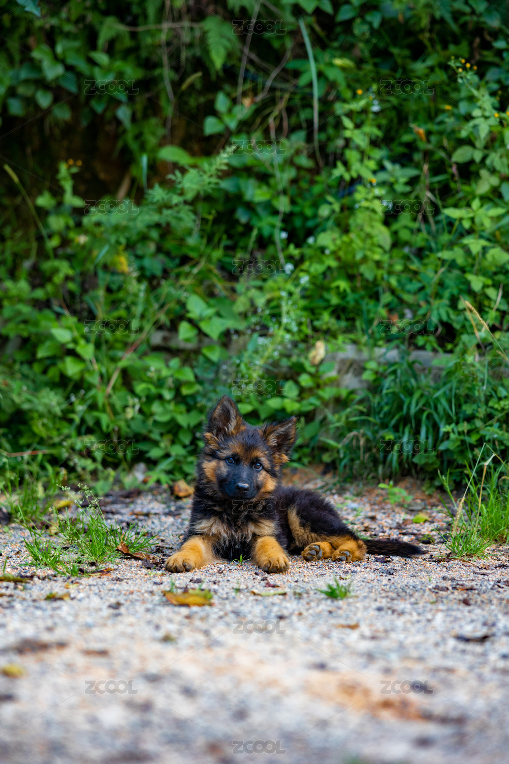 一只德牧幼犬在户外玩耍