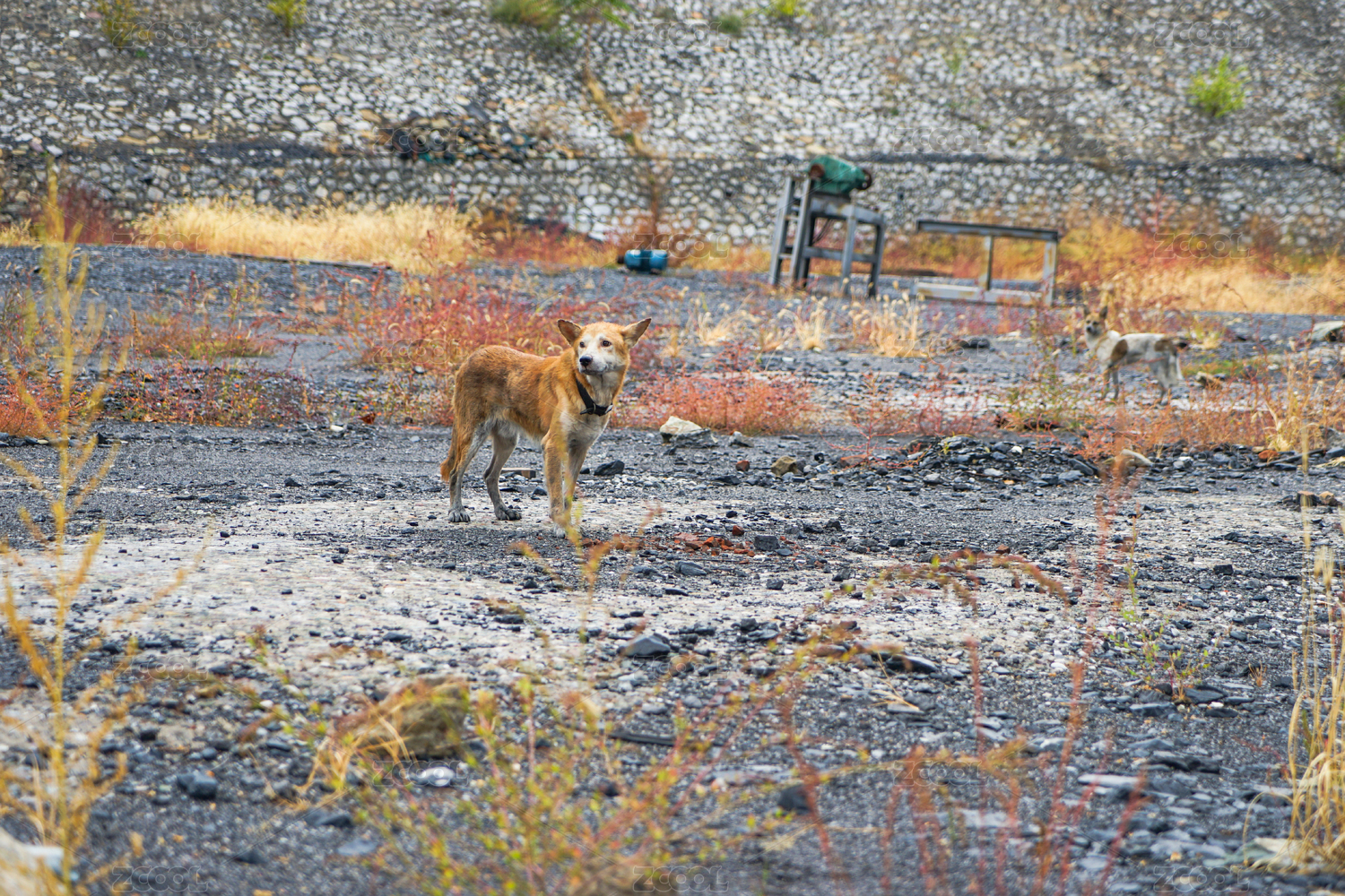流浪狗在废弃矿场