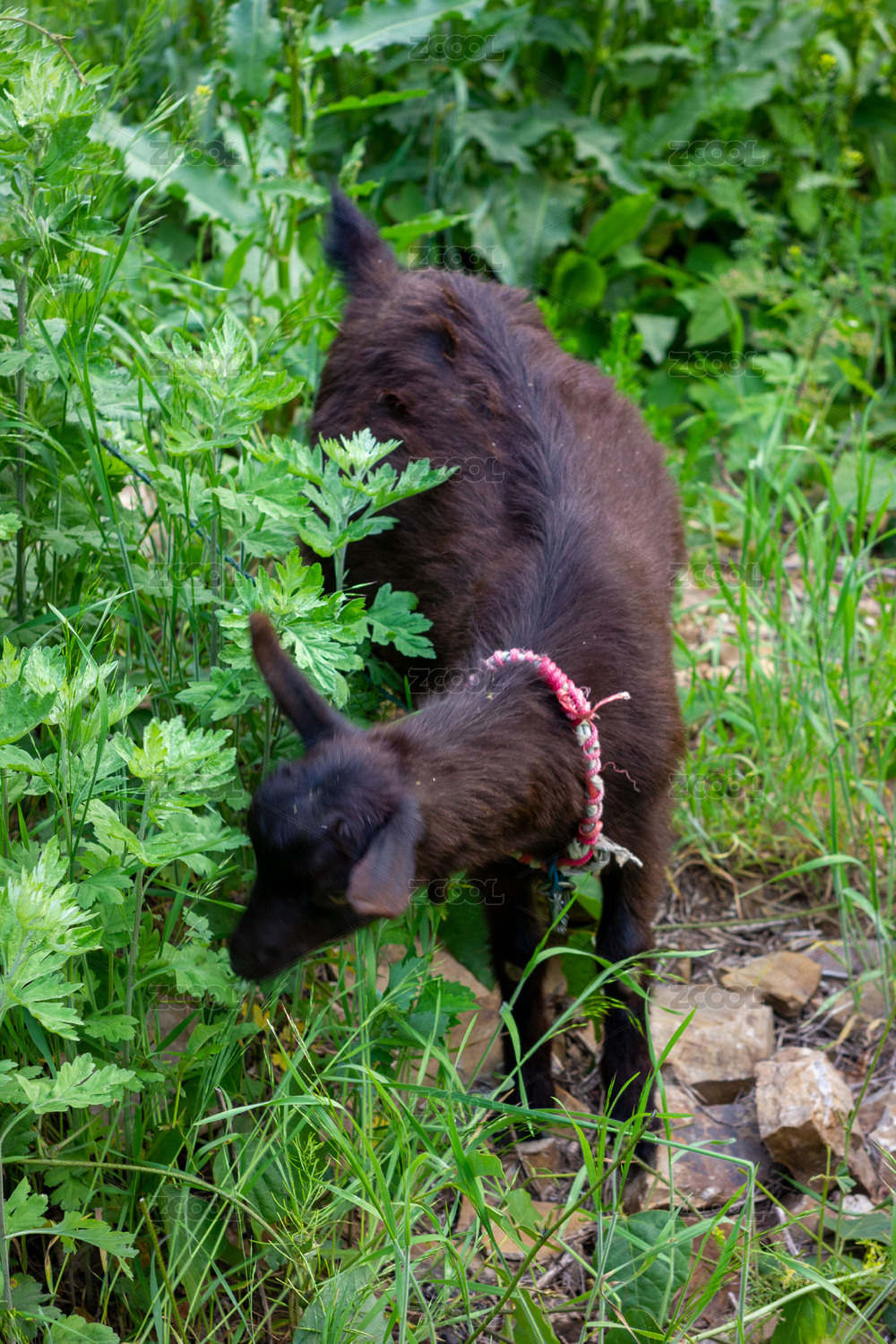 一只在草地里东张西望的小黑山羊