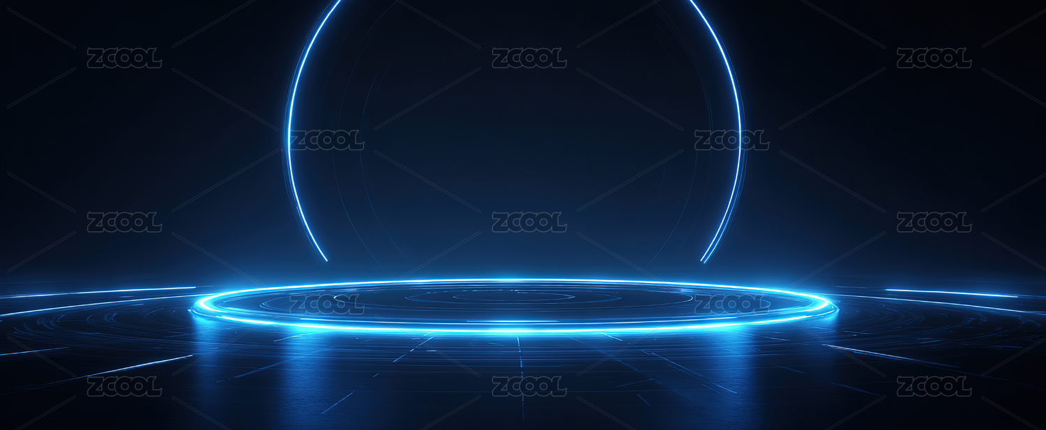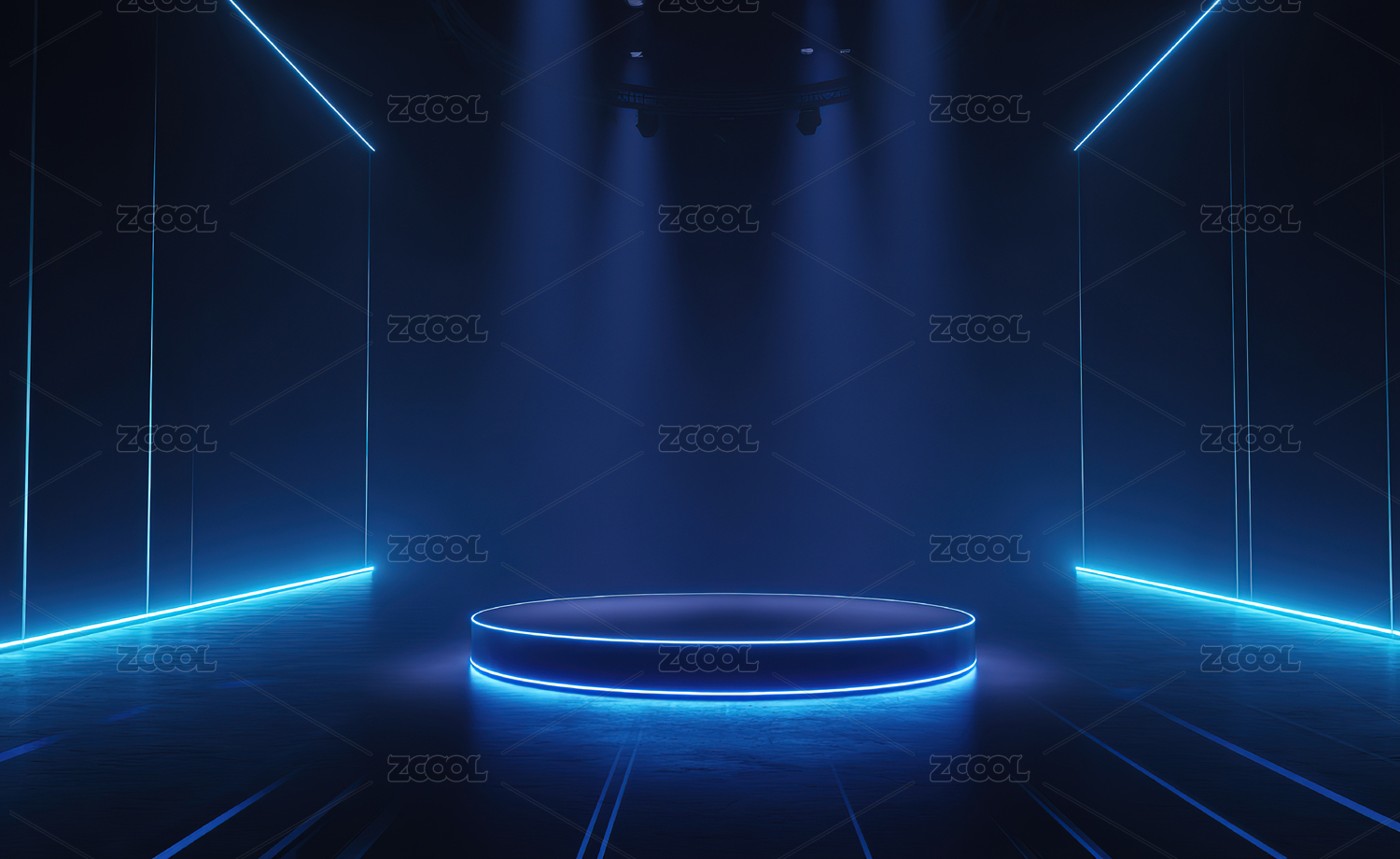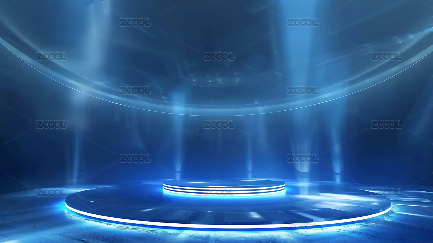 蓝色霓虹灯抽象空场景光束射灯光线概念插图
