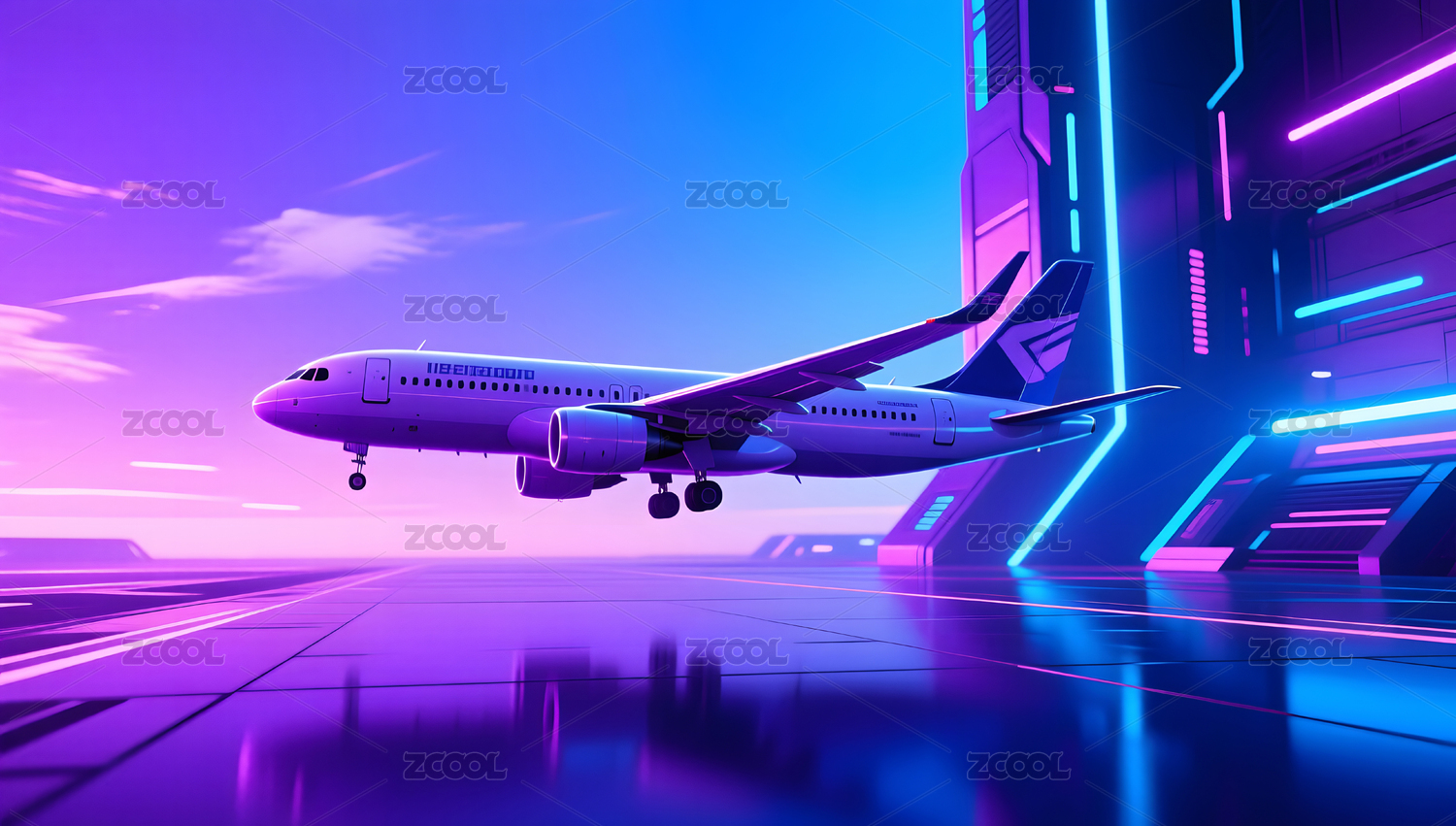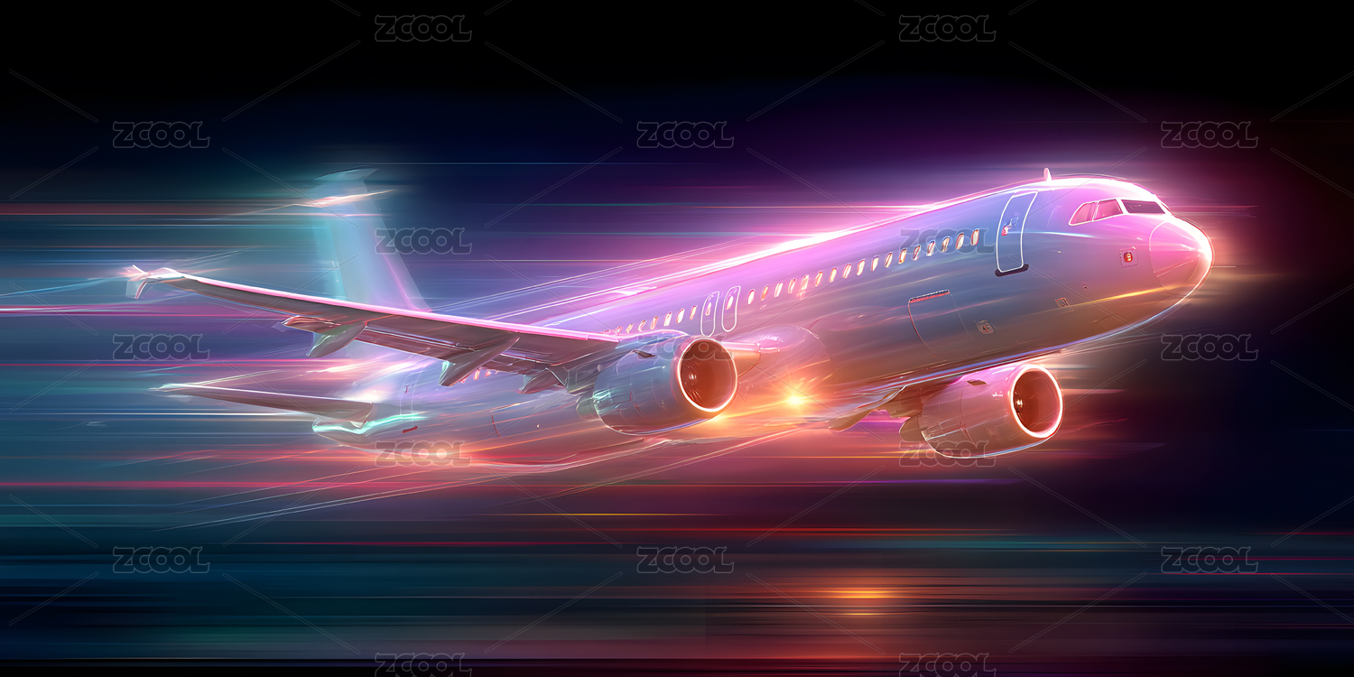 飞机跑道深蓝黑色背景速度激情动感科幻数字