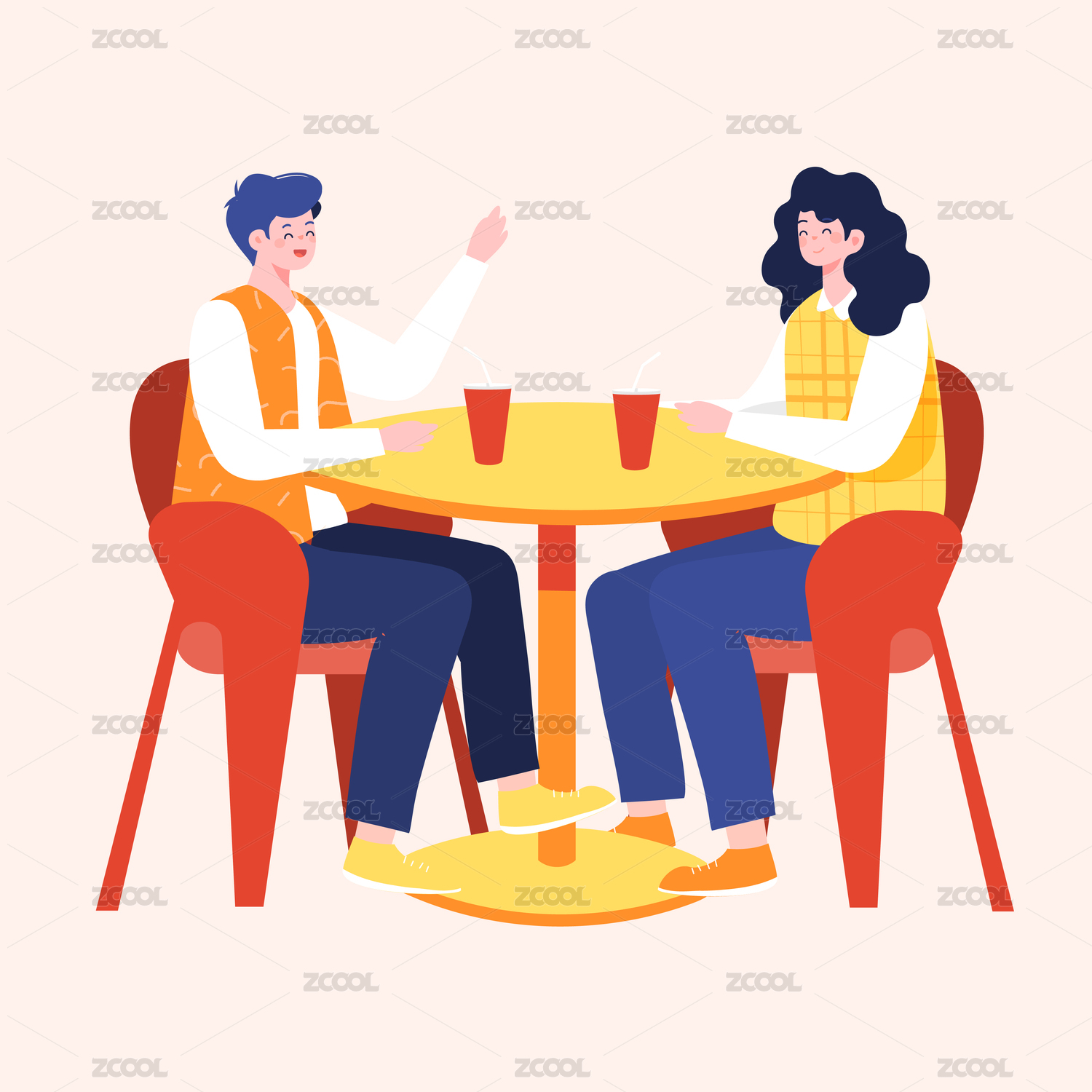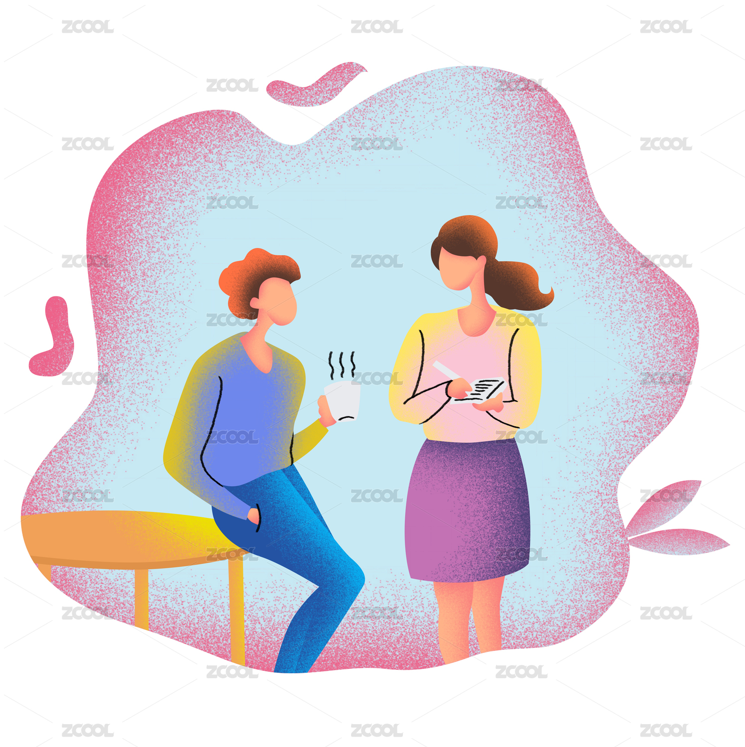 卡通可爱情人节情侣购物节电商促销渐变插画