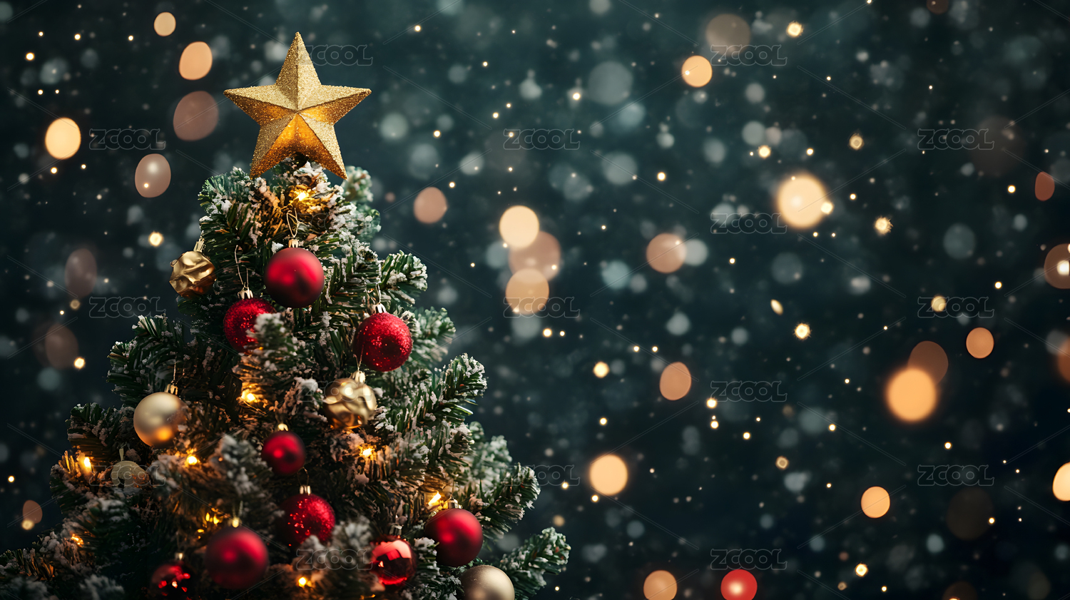圣诞树金色星光闪烁佳节氛围浓厚