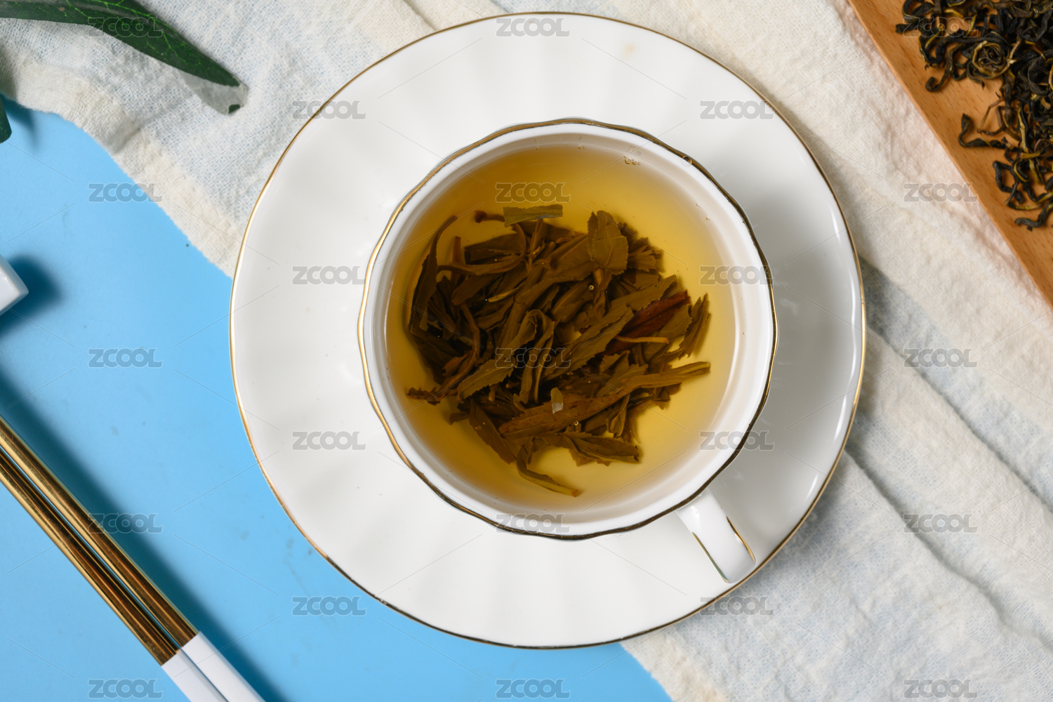 桌面上的杯子里的甘甜可口的绞股蓝茶