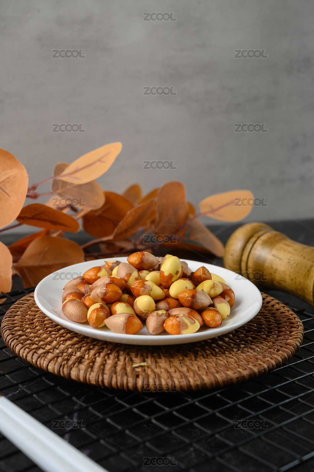 桌面上的盘子里的美味可口的白果