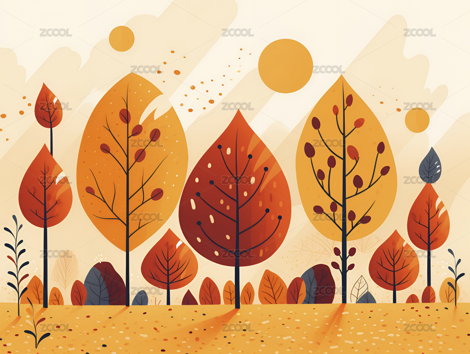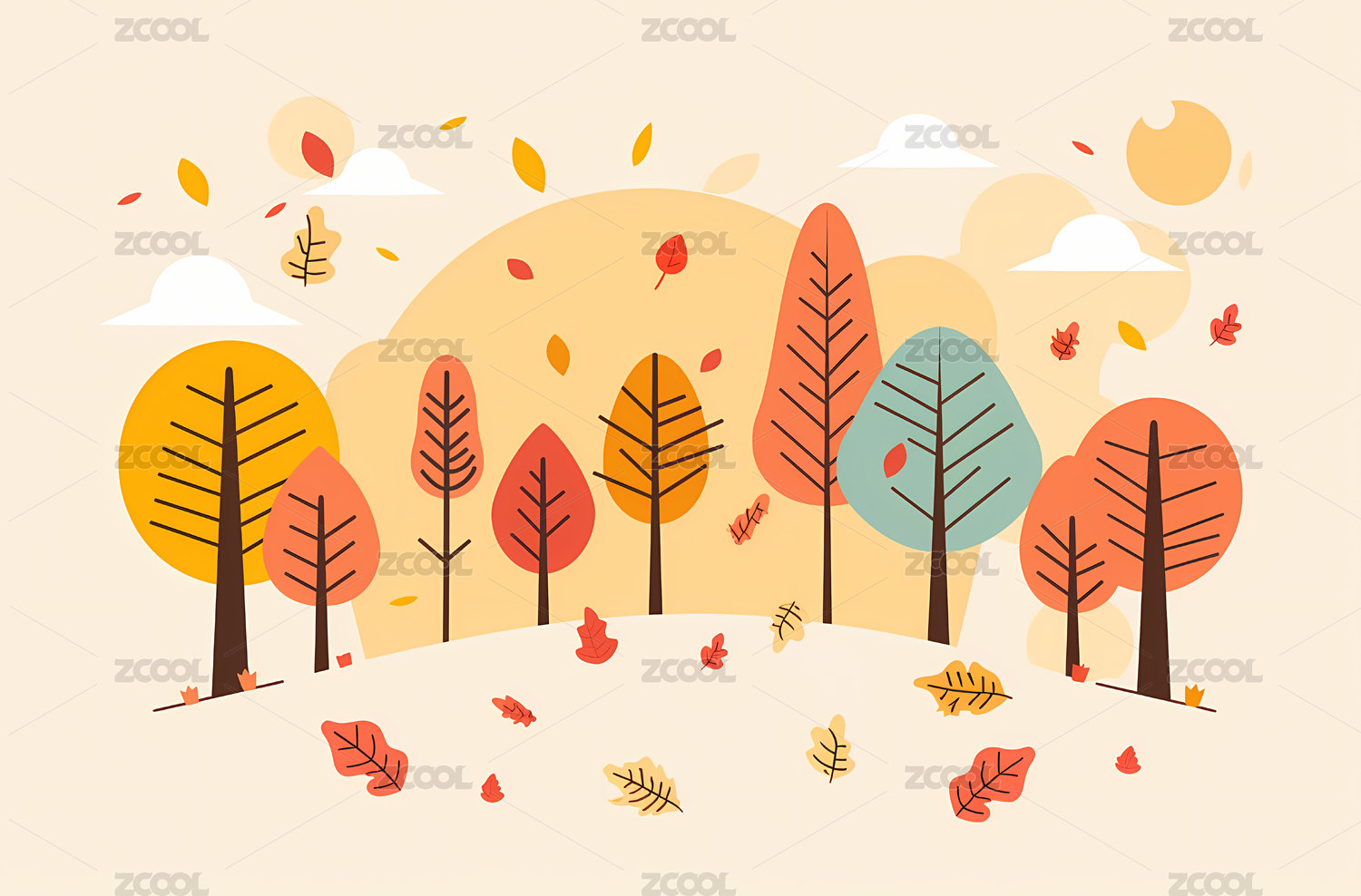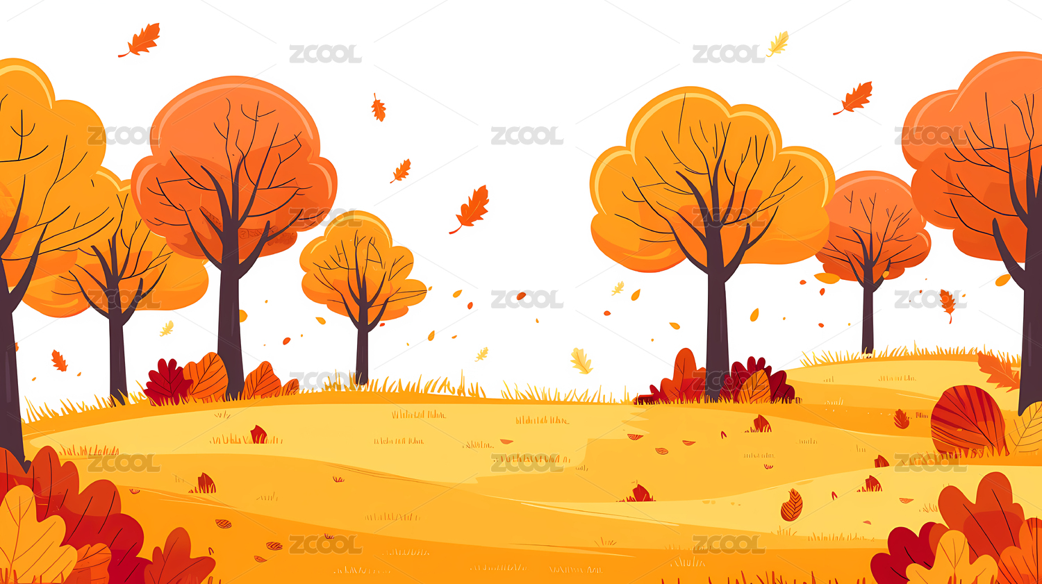 秋天秋季立秋秋分自然户外风景卡通漫画插画