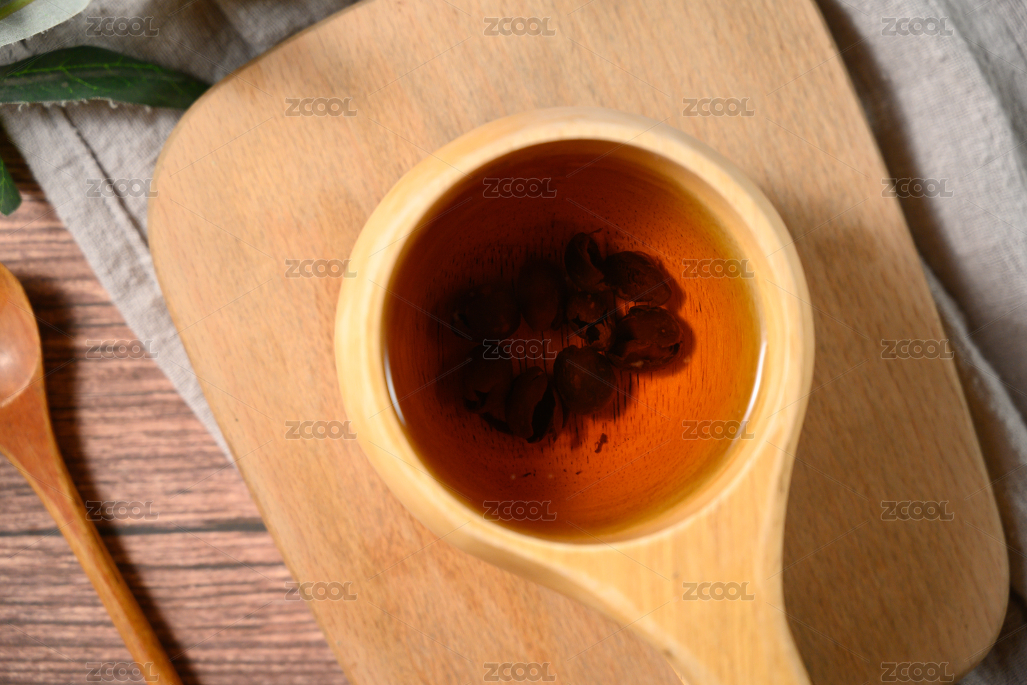 桌面上的盘子里的美味可口的咖啡果皮茶