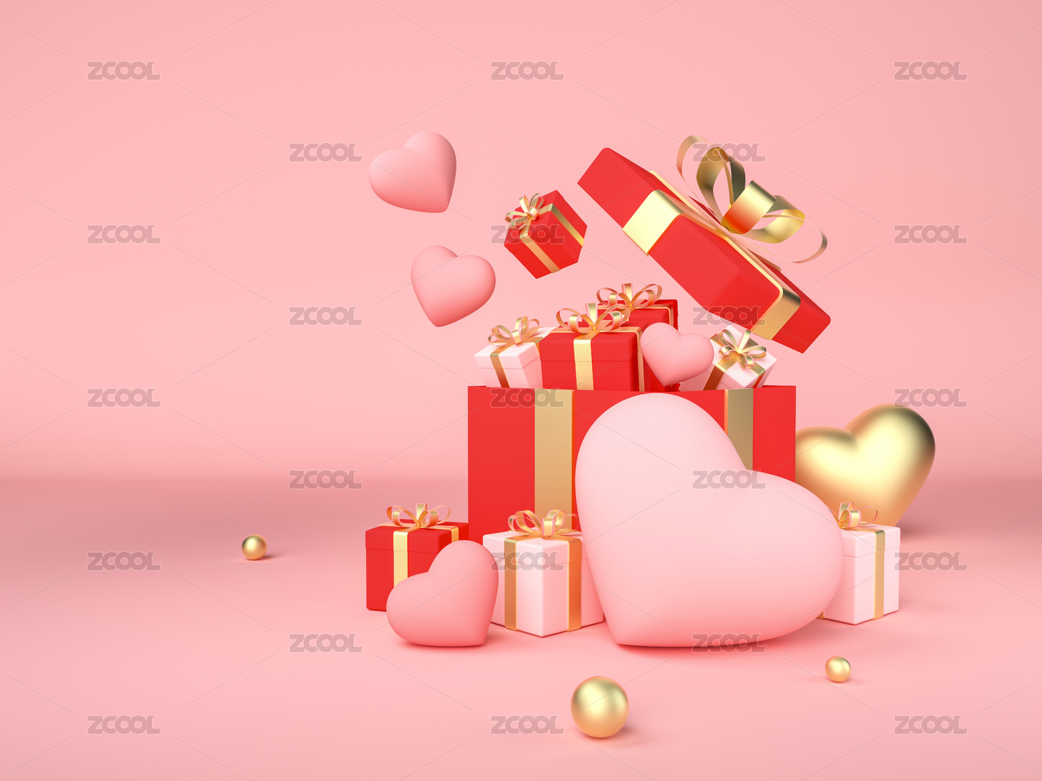 金色,立体,3D,三维,粉色,情人节,520,七夕,爱心,礼盒
