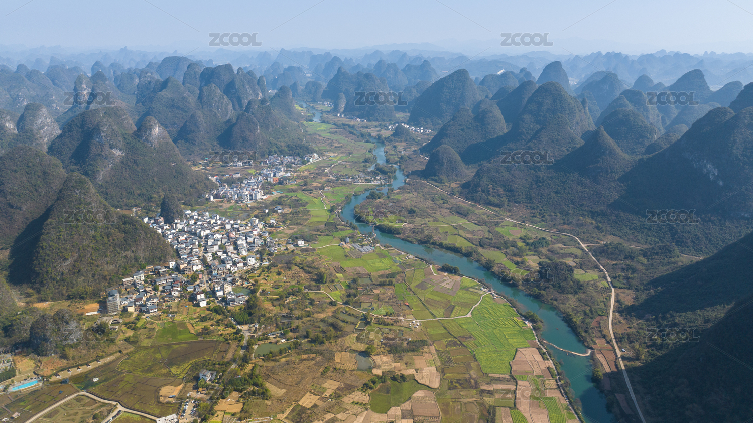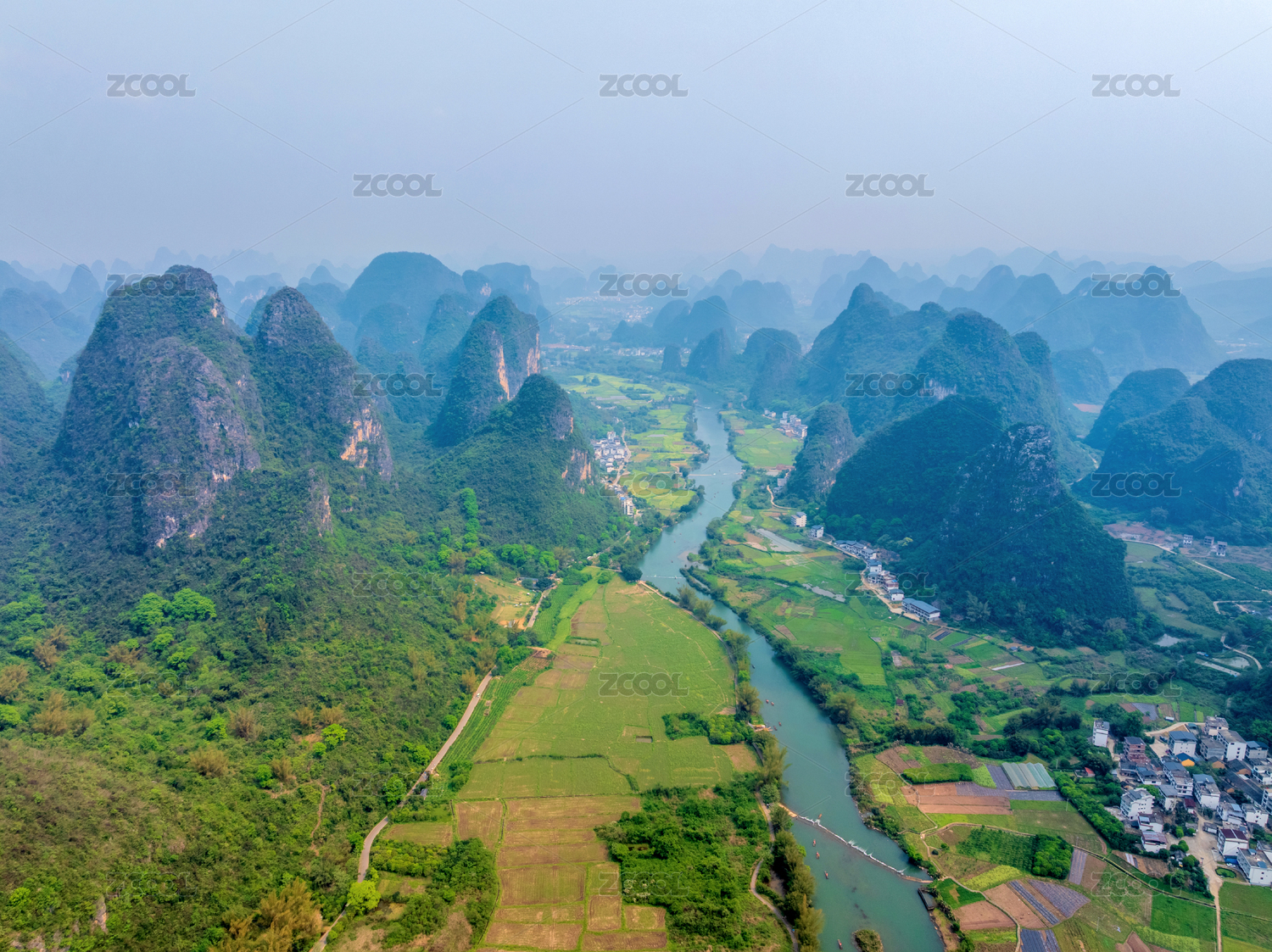 广西桂林阳朔十里画廊航拍乡村田园自然风光