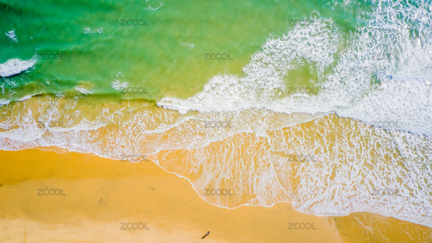 三亚海棠湾冲浪圣地的浪花拍打沙滩航拍风景