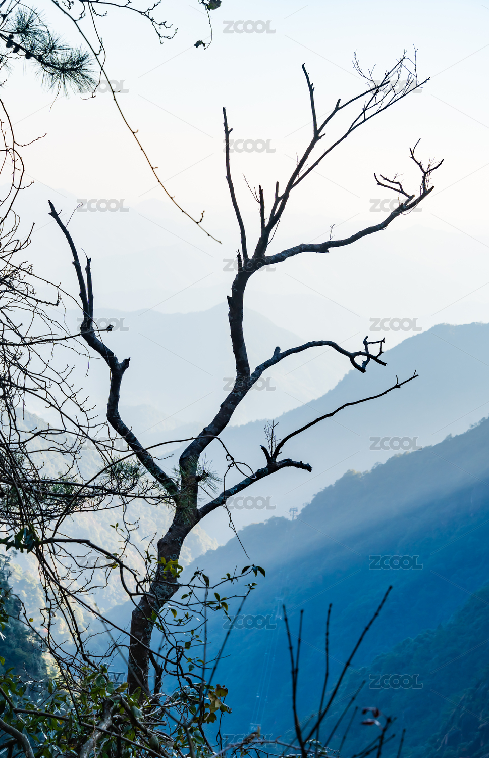 高山上的野草枯树