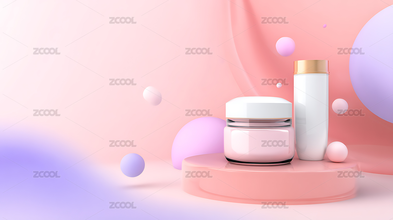 3D渲染洗面奶化妆品模板展示平台三维背景
