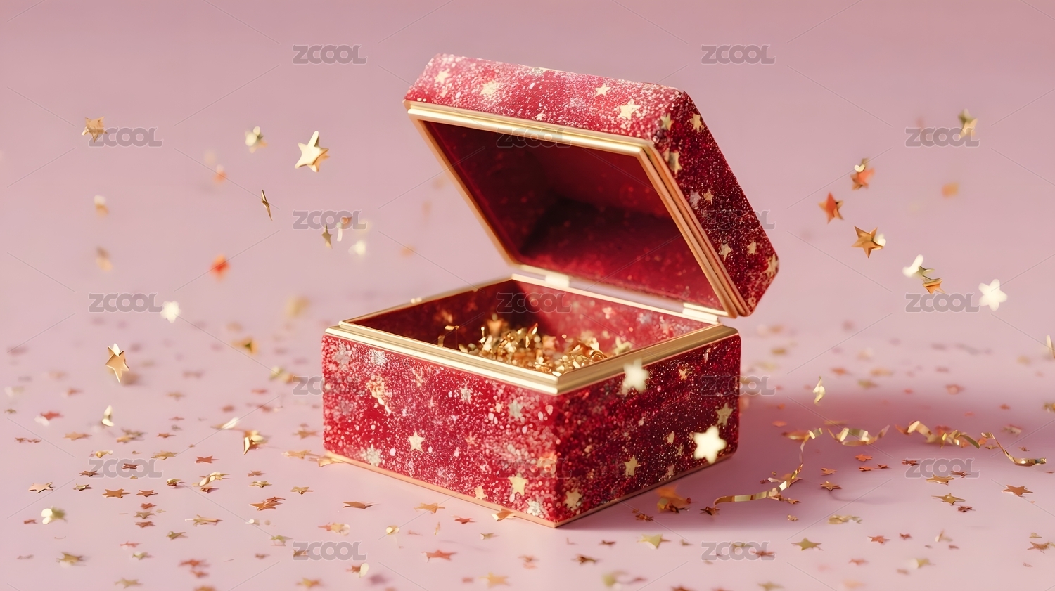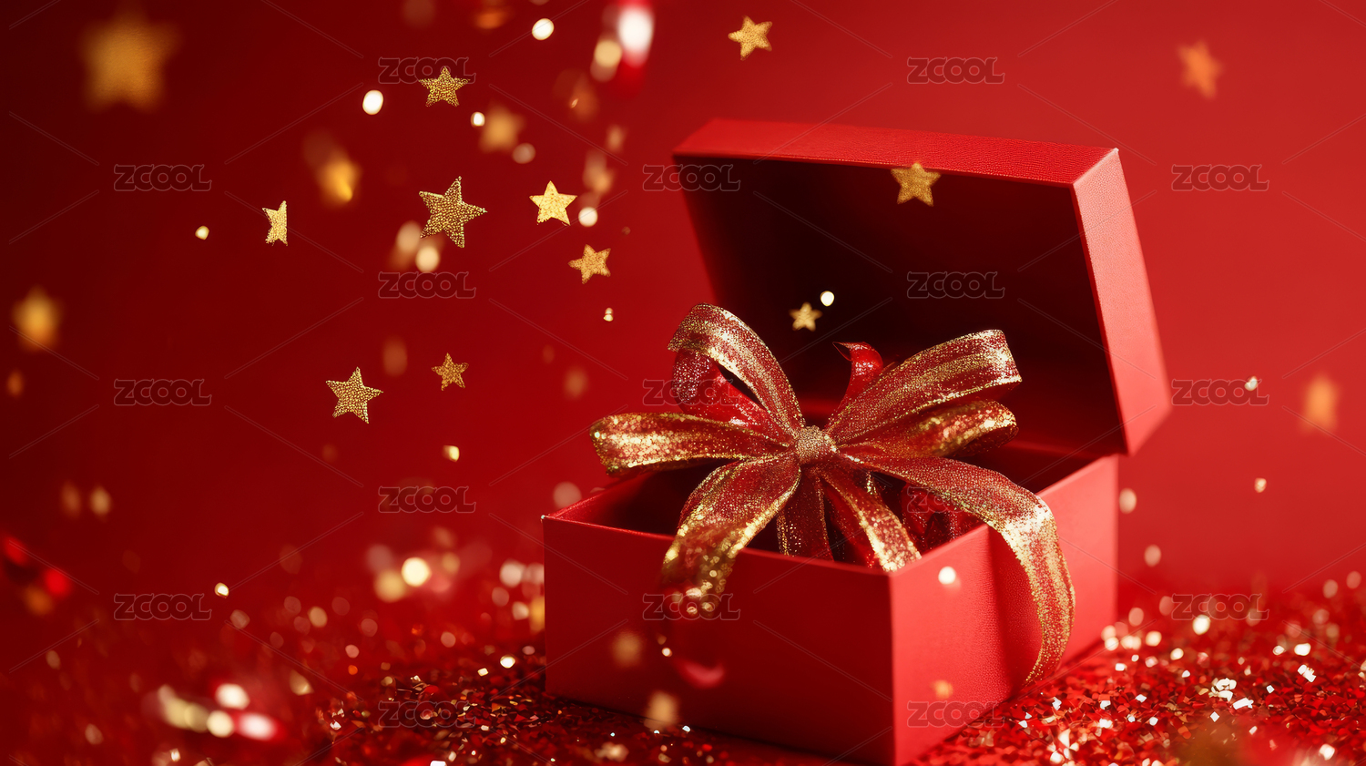 打开的红色礼盒,金色闪光