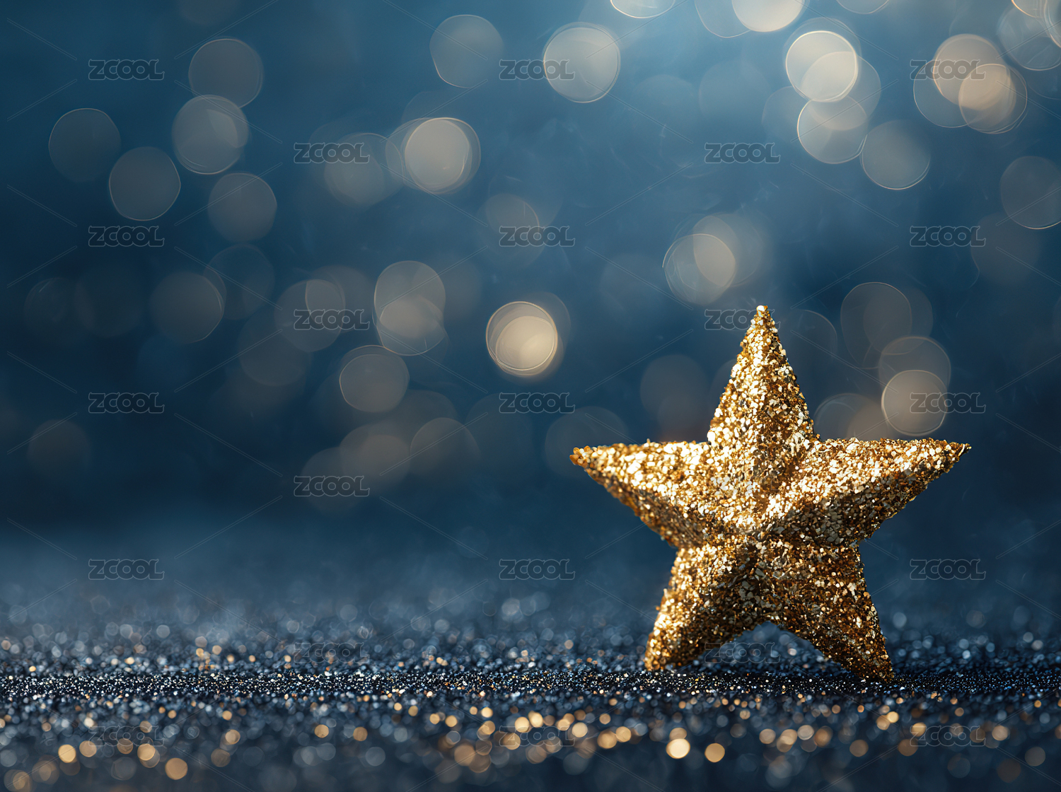 闪耀星星点缀蓝色背景,节日氛围
