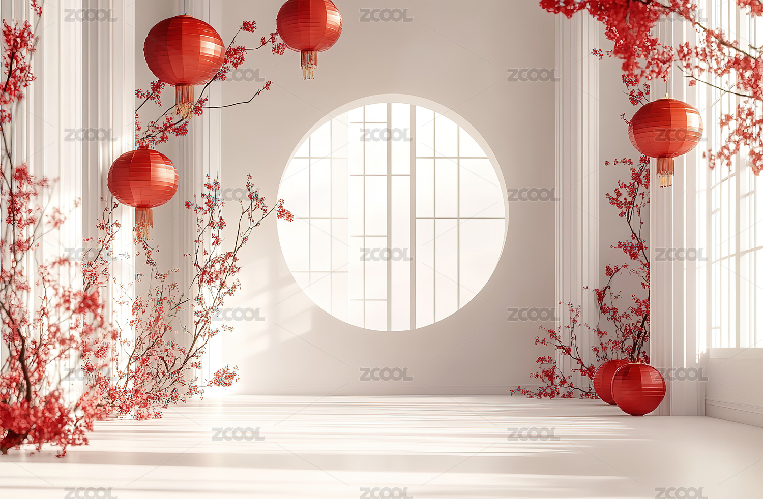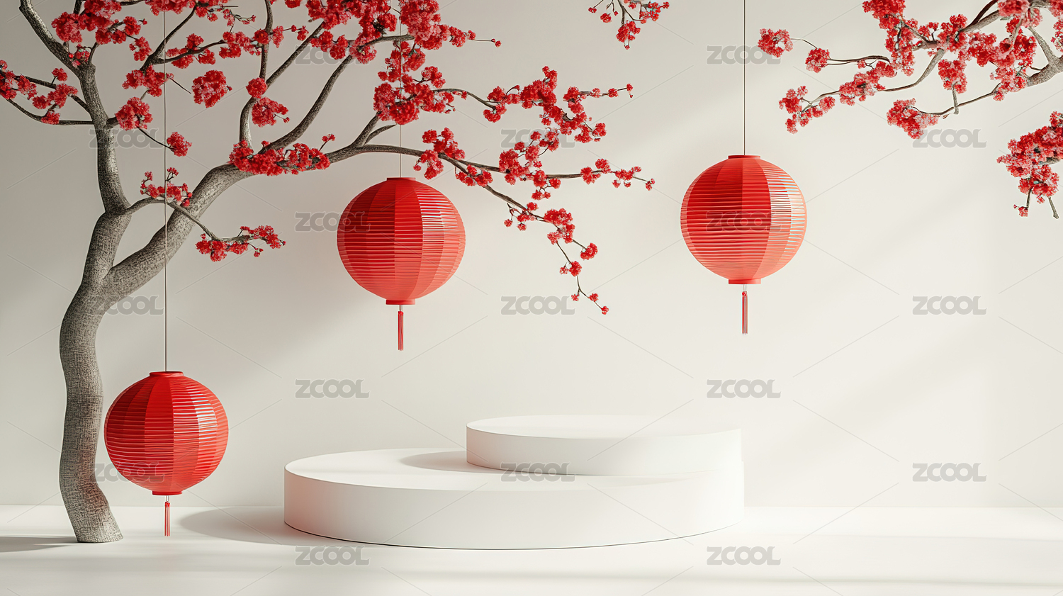 中国风灯笼梅花节日喜庆主题电商产品展台