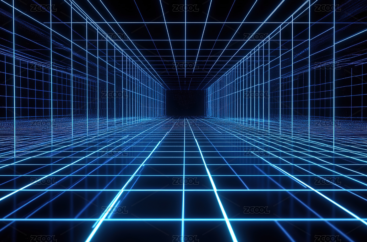 蓝色网格隧道透视图
