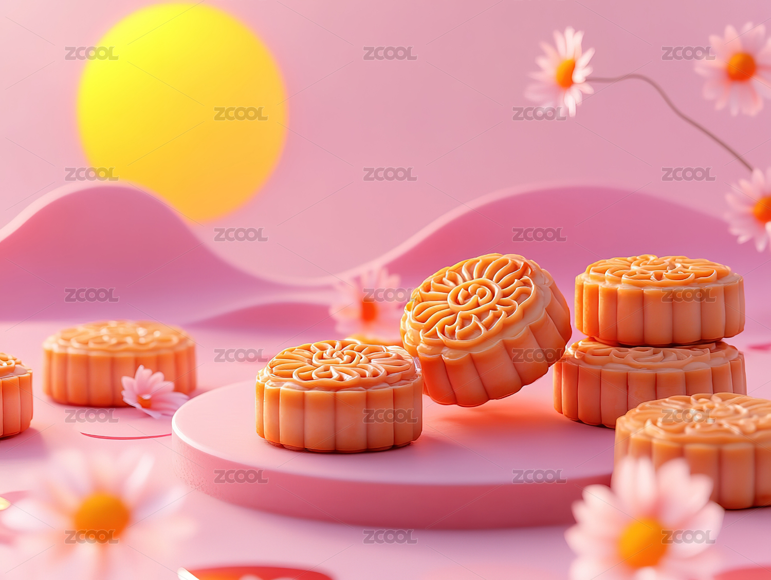 中秋节富贵花朵中的月饼