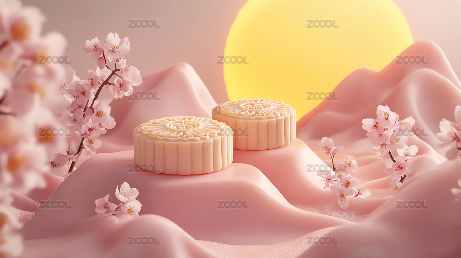 中秋节月饼与樱花树