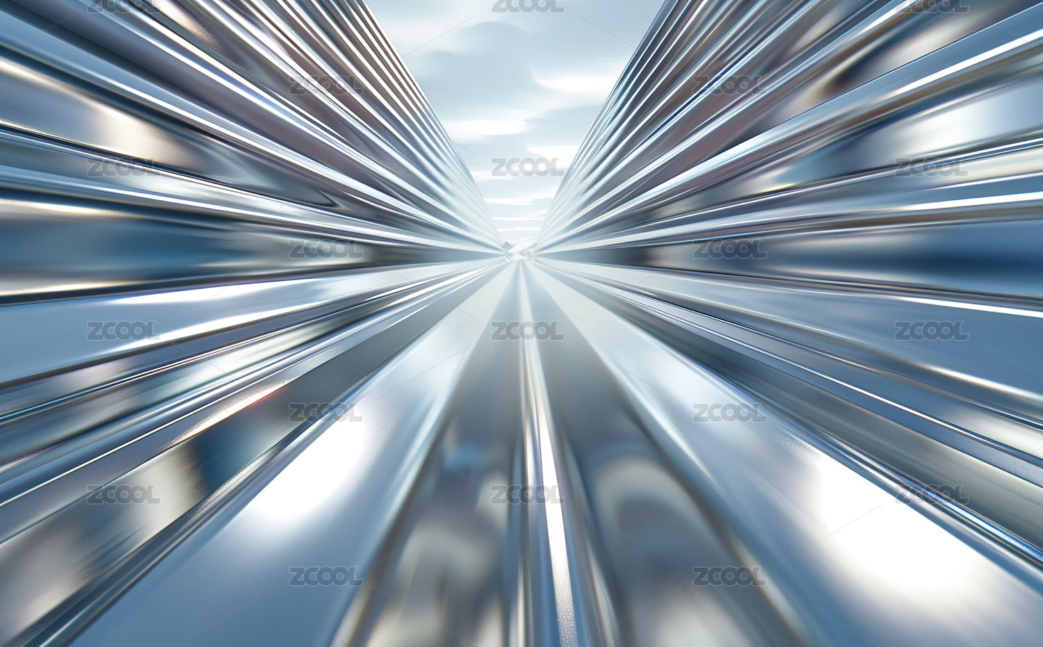 银色立体玻璃条块从中间向四周扩散背景